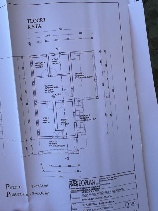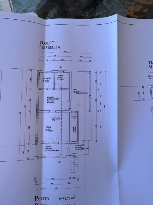Na prodaju je pola kuće koja se sastoji od tri stana sa terasama i balkonima. Uz kuće se prodaje i spremište. Raspored i tlocrti su u prilogu.