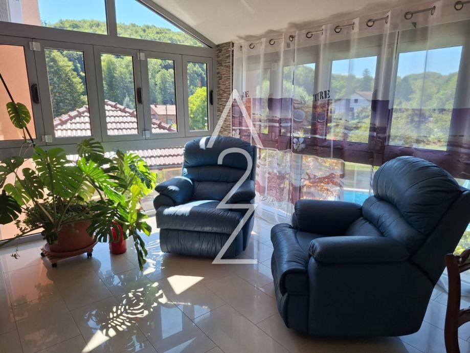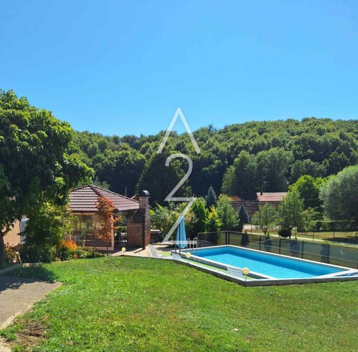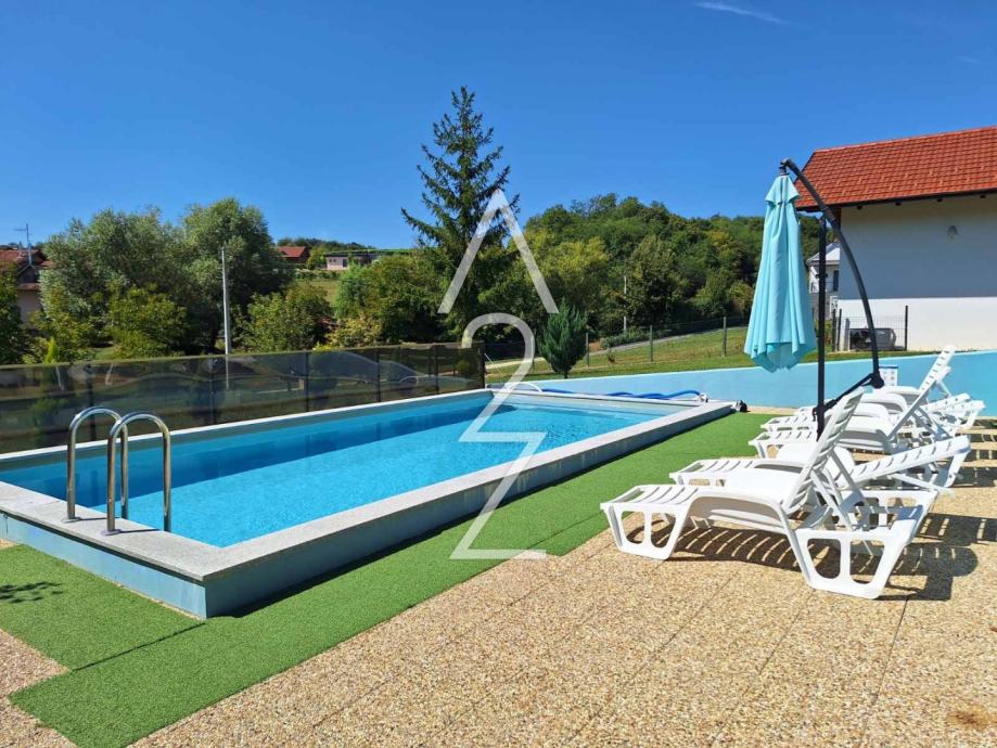 Na prodaju je veličanstvena kuća u Jurovčaku na parceli od gotovo 4000m2. Kuća je sagrađena 2010. godine i tlocrtno je 211 m2, a sastoji se od suterenskog dijela, srednje etaže i potkrovlja, dakle cca 575m2 površine. Estetski je nevjerojatno dojmljiva jer je spoj modernog sa klasično-rustikalnim elementima. Svaka etaža ima svoju kuhinju, svoj dnevni boravak, spavaće sobe i kupaonice. Namještaj je u kompletnoj kući rađen po mjeri, s puno pažnje i osjećaja za detalj.