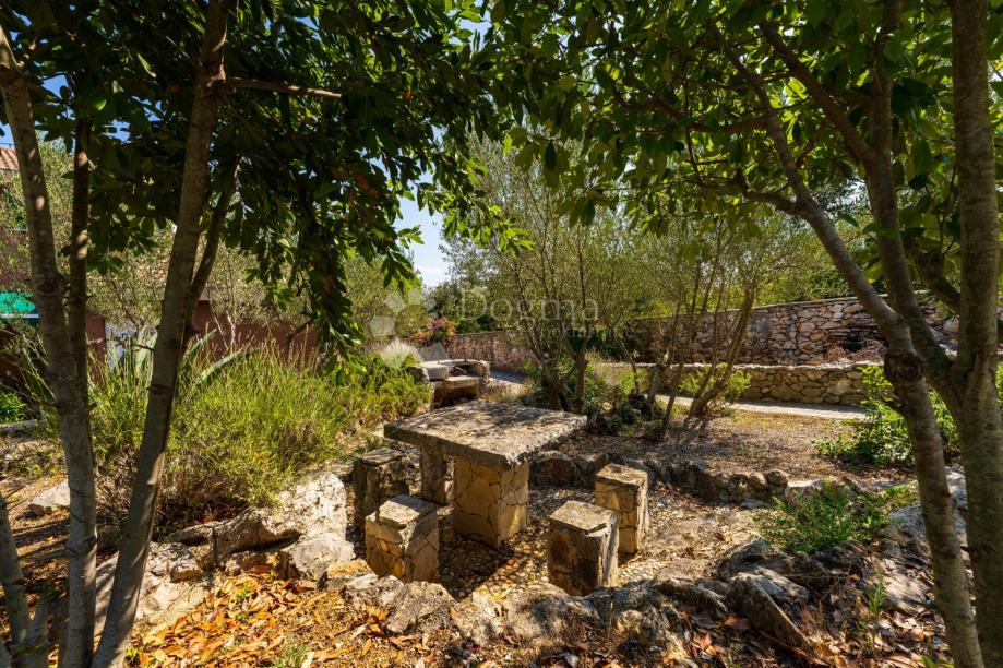 Cjelokupna površina okućnice, uključujući spremište i navedeni privatni put do mora, iznosi 2.001 m².