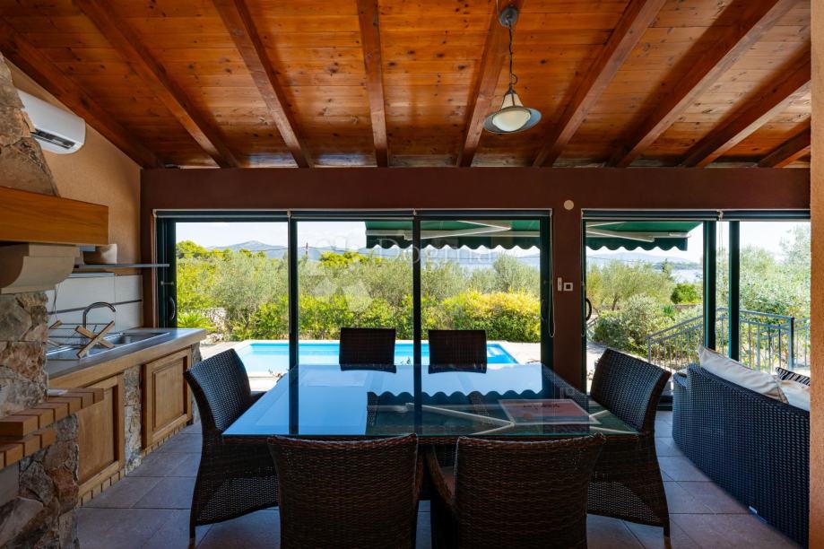 Otkrijte pravi bijeg u vlastitu oazu s bazenom okruženim mediteranskim biljem, gdje se konačno možete opustiti uz roštilj na otvorenom. Najveći luksuz ove nekretnine su privatne stepenice koje se spuštaju do plaže, omogućujući vam neposredan dodir s morem kad god poželite.