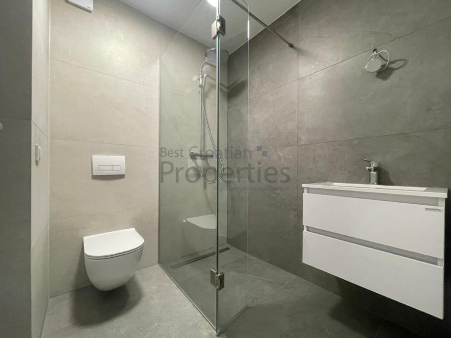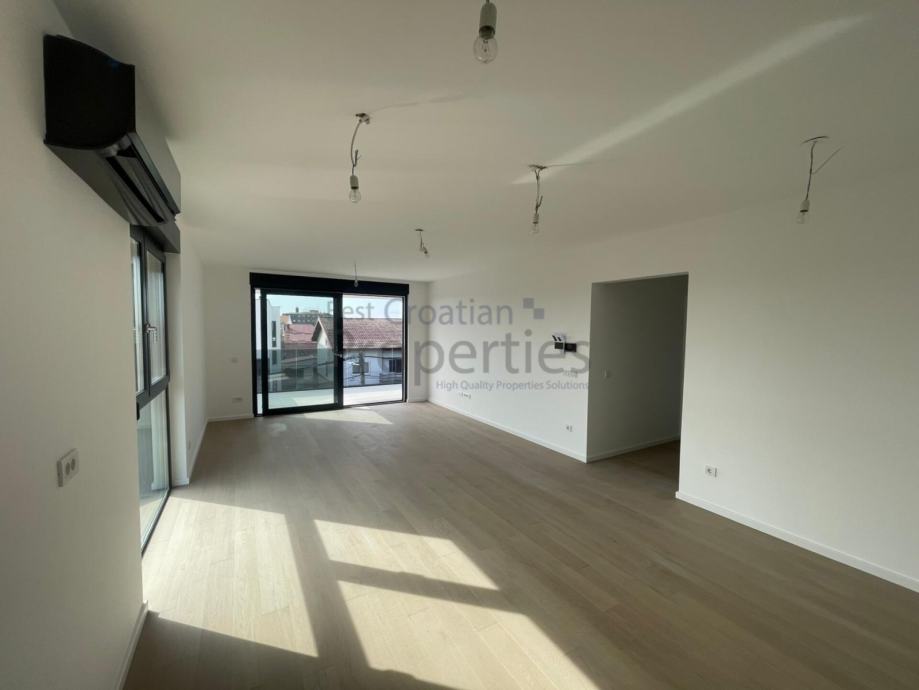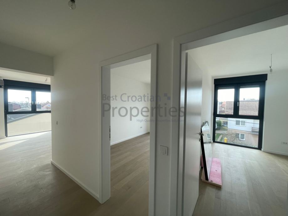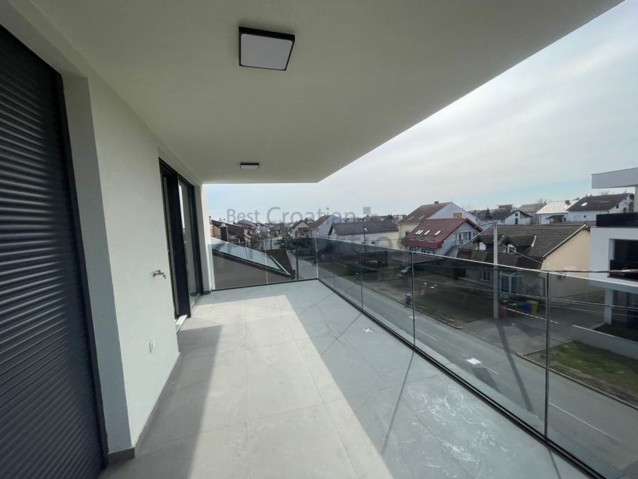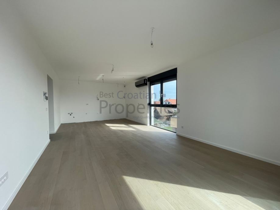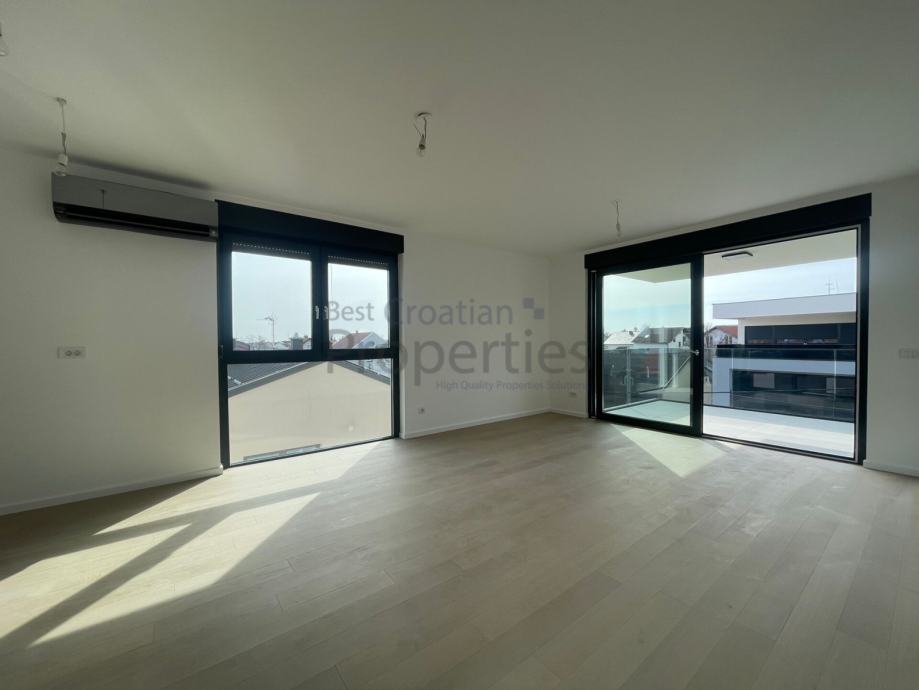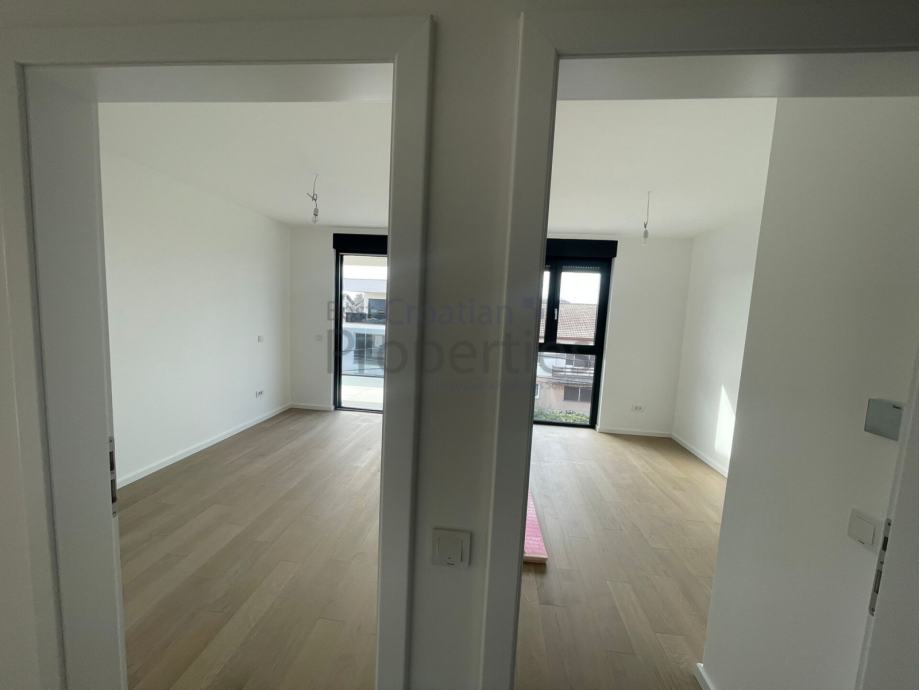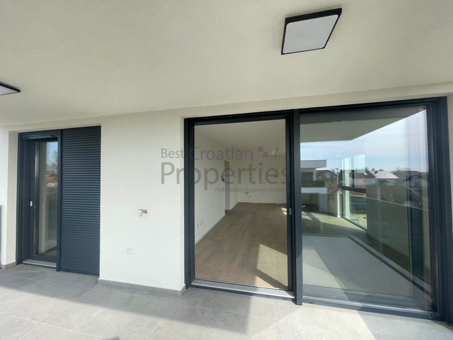 Predmetni stan se sastoji od ulaznog hodnika, dnevnog boravka sa kuhinjom i blagavaonicom, dvije spavaće sobe, dvije kupaonice sa wc-om i velikog natkrivenog balkona.