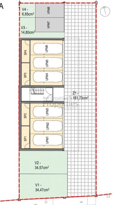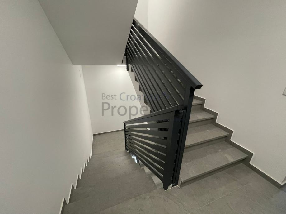 Ovaj moderni objekt visoke klase unutarnjeg uređenja izveden je s velikom pažnjom pri odabiru materijala i rasporeda stanova. Predivan i moderan izgled zgrade.