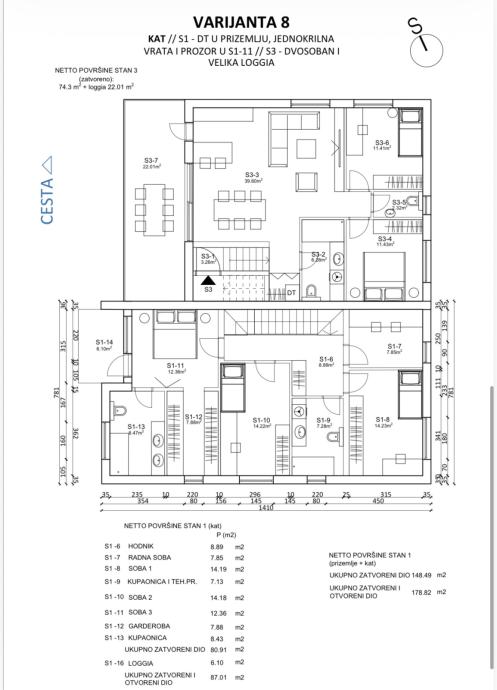 Stan je funkcionalnog i modernog rasporeda, s jasno odvojenim dnevnim i spavaćim dijelom, idealan za obiteljski život.