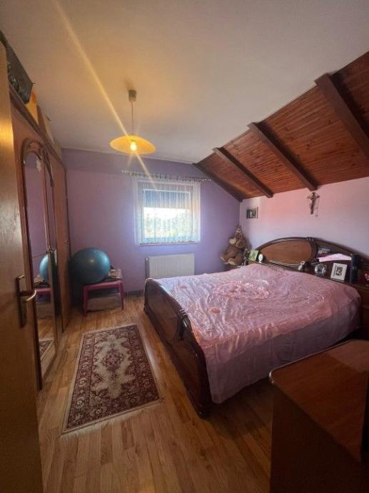 Samostojeća obiteljska kuća sa dva stana u mjestu Novo Čiče udaljena od Velike Gorice i Domovinskog mosta cca 4 km. Sastoji se od prizemlja (ulazni hodnik, dnevni boravak s kuhinjom i blagovaonicom, kupaonica, dvije spavaće sobe i natkrivena terasa) i potkrovlja (dnevni boravak sa kuhinjom i blagavaonicom,dvije spavaće sobe, kupaonica, ostava i dvije terase). Pored kuće je garaža i pomoćne zgrade površine 41 m2. Okućnica je održavana, ograđena, opločena i uređena. Posjeduje priključak struje, vode, septička, a grijanje je centralno na drva. Moguća zamjena za 2-sobni stan u Velikoj Gorici uz nadoplatu. Posjeduje urednu vlasničku dokumentaciju.