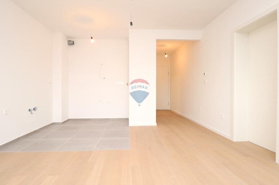 Stan se nalazi se na prvom katu i sastoji se od prostranog open space dnevnog boravka s kuhinjom (25m2), spavaće sobe (12m2), kupaonice (5m2) i loggie tlocrtne površine 6m2.