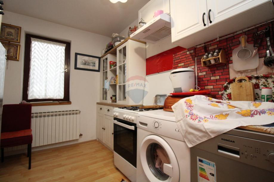 U prizemlju (44 m2) se nalazi kuhinja sa blagovaonom, toalet te garaža.