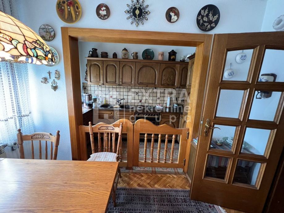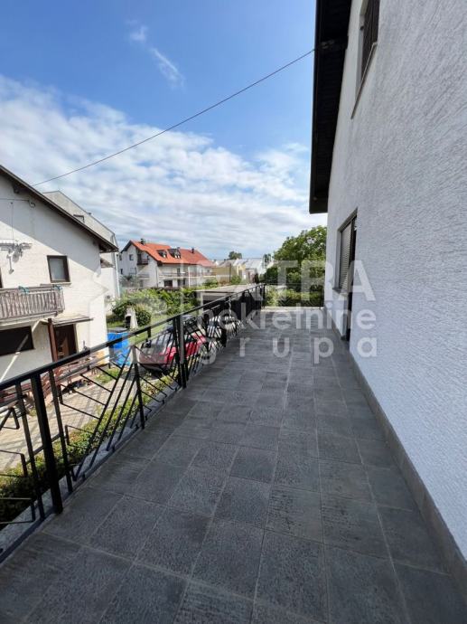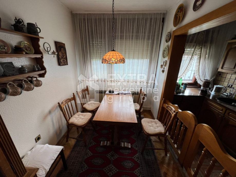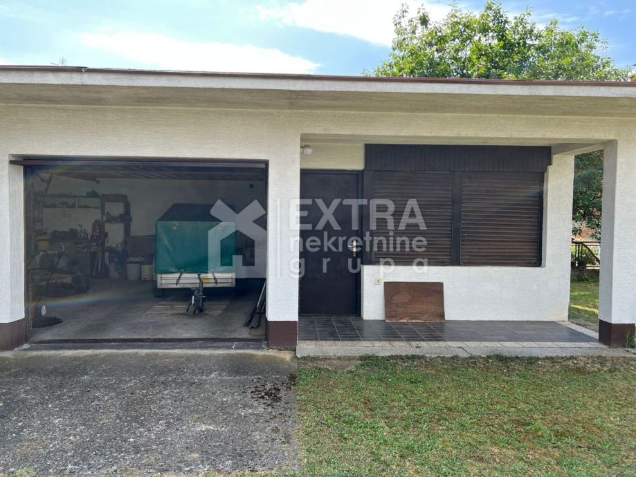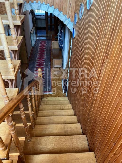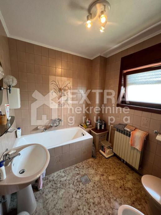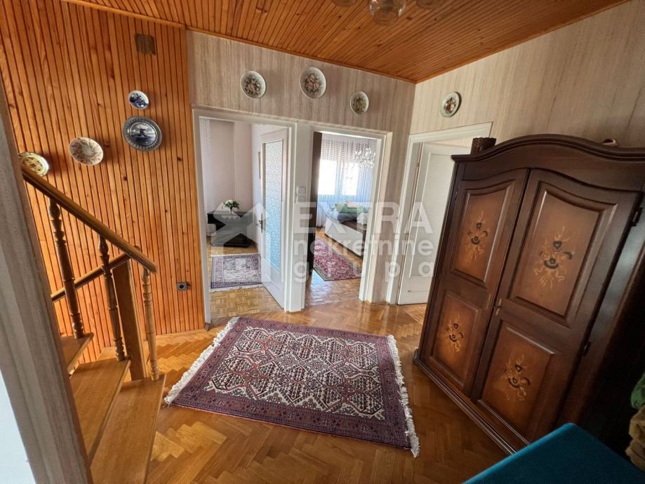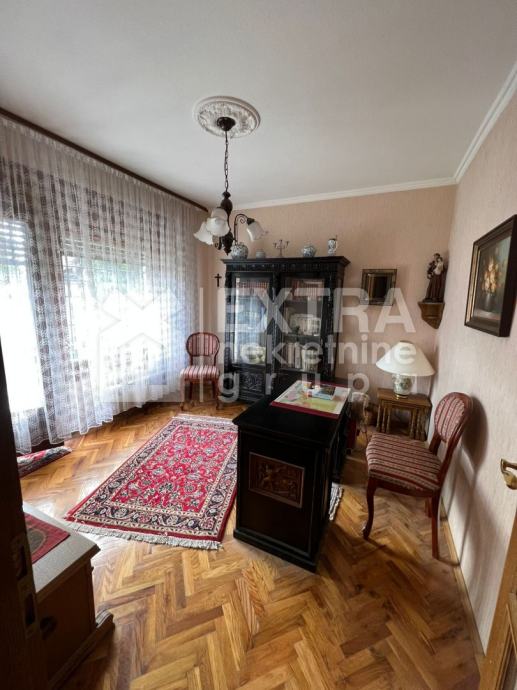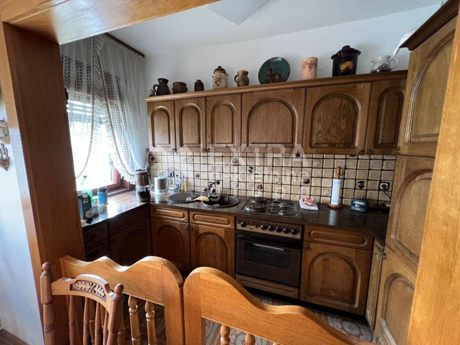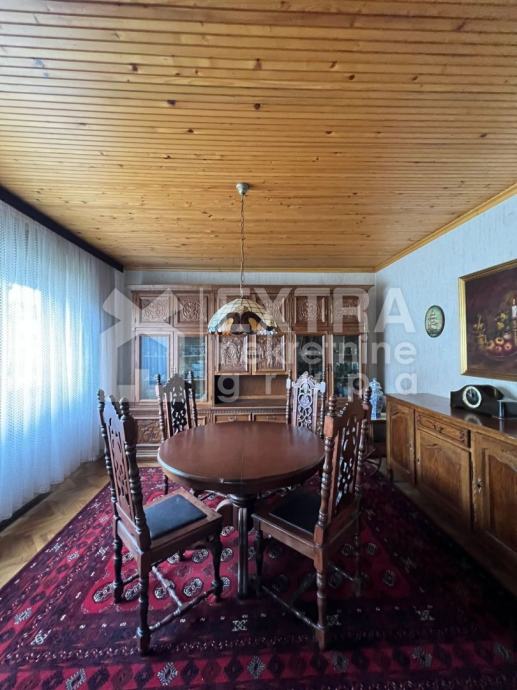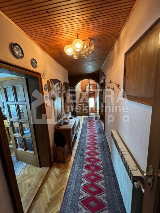 Prodaje se kuća u centru Velike Gorice, u mirnom naselju okruženom obiteljskim kućama. Sastoji se od tri etaže; prizemlja, kata i tavanskog prostora. U prizemlju se nalaze: kuhinja, dnevna soba, čitaonica, kupaonica sa WC-om, hodnik i ostava. Na katu su: dnevna soba, tri spavaće sobe, kupaonica sa WC-om, hodnik i terasa. Tavanski prostor je u roh - bau izvedbi. U podrumu se nalazi kotlovnica. Etaže su povezane unutarnjim stubištem od podruma do potkrovlja. Kuća je izgrađena 1977.g. sa kompletnom infrastrukturom. Smještena je na parceli od 689 m2, okružena zelenilom. U dvorištu je smještena ljetna kuhinja i dvije garaže. U neposrednoj blizini su svi potrebni sadržaji, glavni autobusni kolodvor na nekih 150 m te gradska tržnica. Kuća posjeduje urednu vlasničku dokumentaciju.