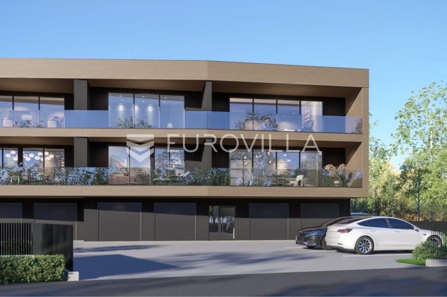 Zagreb, Velika Gorica, beautiful four-bedroom apartment in building B. It comes with a storage room, an outdoor parking space and a garage.The apartment consists of an entrance hall, a living room with a kitchen and a dining room with an open floor plan with access to a loggia, three bedrooms, two...