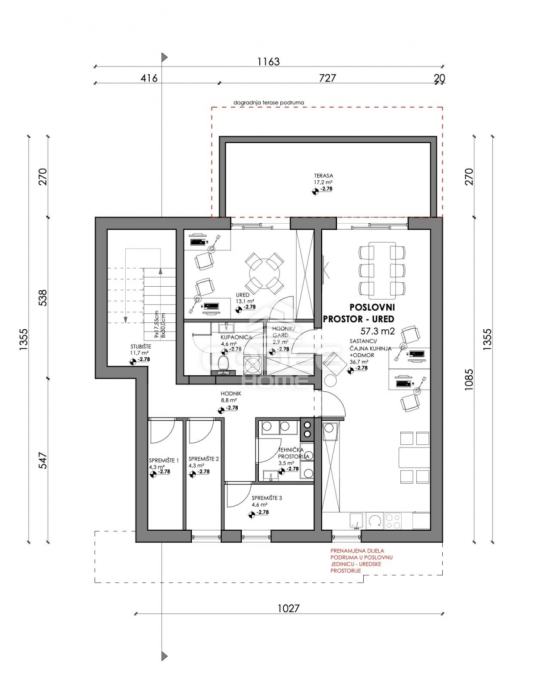 57 m² + terasa 17,2 m² | 2 parkirna mjesta | Klimatizirano | Etažno grijanje