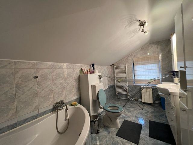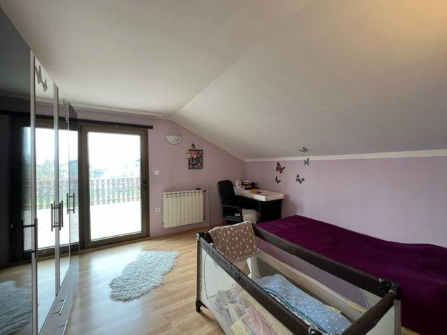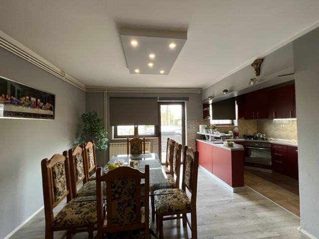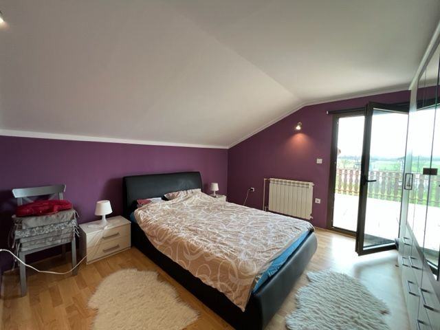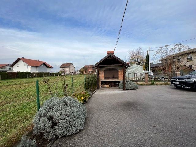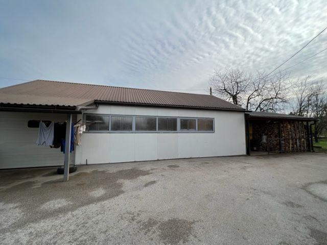 Pored kuće je pomoćna gospodarska zgrada površine 110 m2 u sklopu koje je (garaža, radiona, 2 spremišta i drvarnica). Posjeduje priključke struje, vode, kanalizacije, centralno grijanje na drva. Okućnica je ograđena, asfartirana, održavana i uređena. Vlasnička dokumentacija uredna.