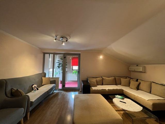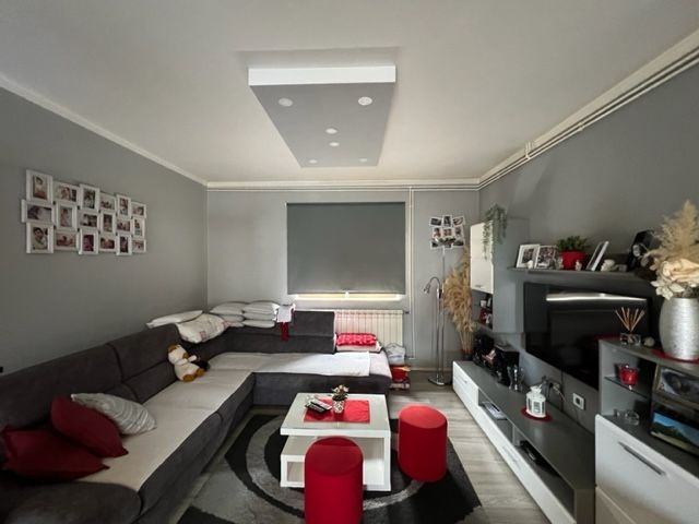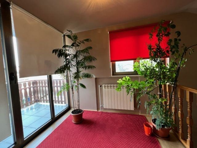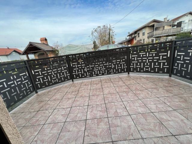 Sastoji se od prizemlja (dnevni boravak, kuhinja i blagovaonica,spavaća soba, kupaonica, hodnik i balkon) i potkrovlja(dnevni borvak sa ugrađenim instalacijama za kuhinju, dvije spavaće sobe,kupaonica, zimski vrt, balkon i terasa iznad garaže površine 30 m2). Uz kuću je garaža i kotlovnica površine 30 m2.