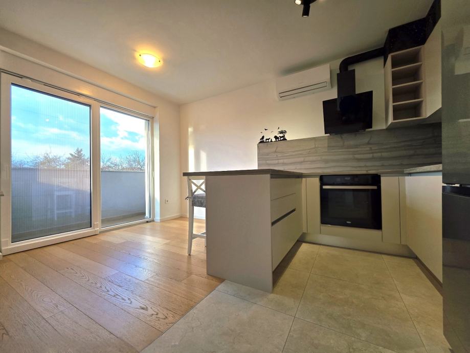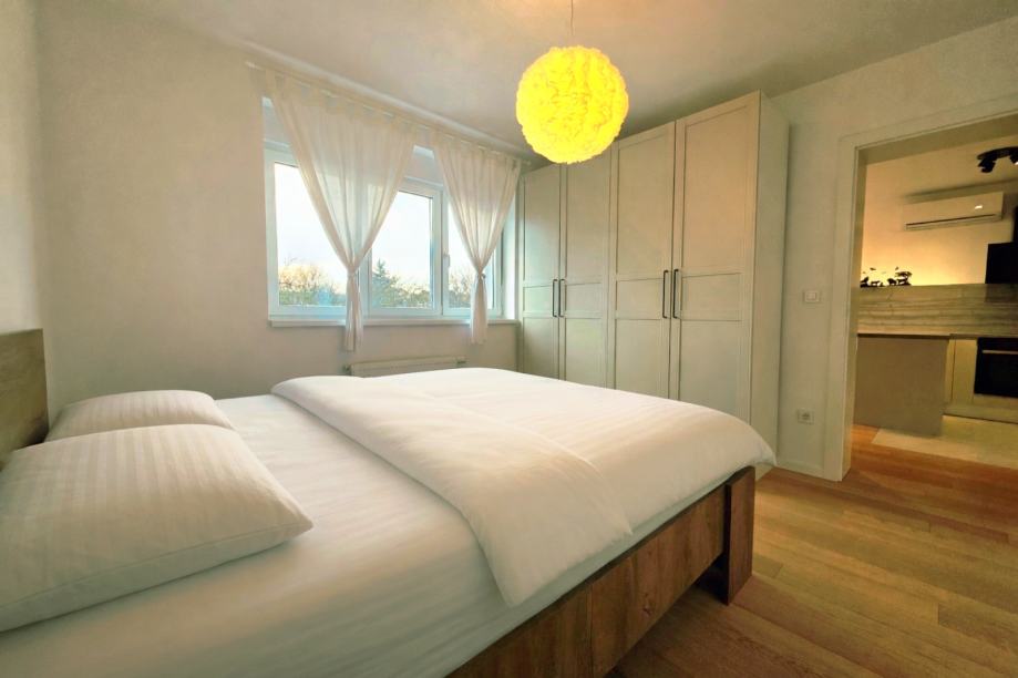 Opremljen je centralnim etažnim plinskim grijanjem kojim se može upravljati putem Bosch aplikacije, uz praktičan termostat, a ugrađeni su Bosch plinski bojler i klima uređaj iste marke. Kuhinja je pomno osmišljena i izrađena s puno prostora za odlaganje, a opremljena je Samsung hladnjakom te Whirlpool 6th Sense pećnicom i indukcijskom pločom. U stanu je postavljen kvalitetan drveni parket, dok su u kuhinji i kupaonici keramičke obloge. U kupaonici se nalazi i Whirlpool perilica rublja.