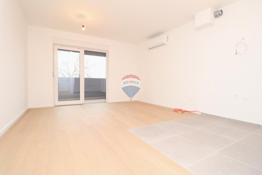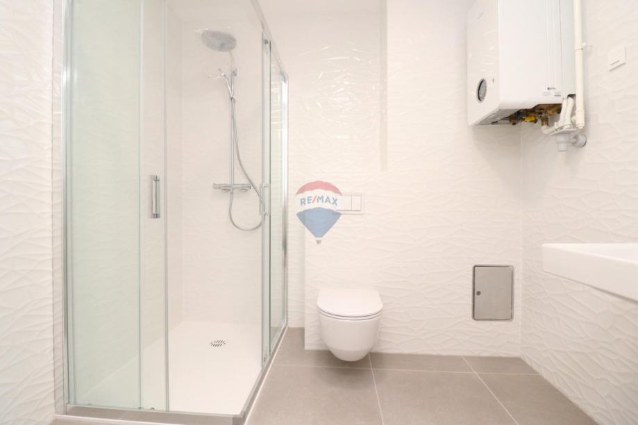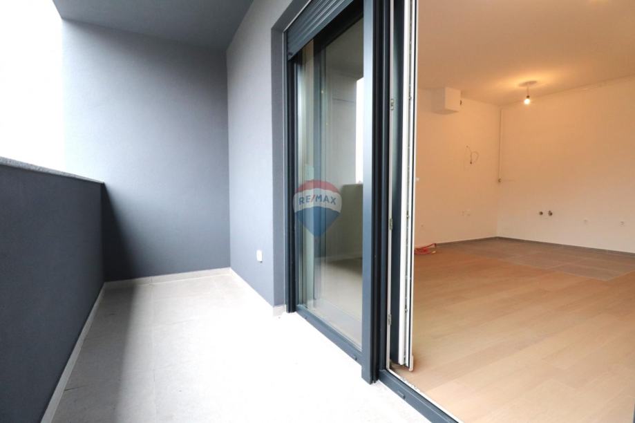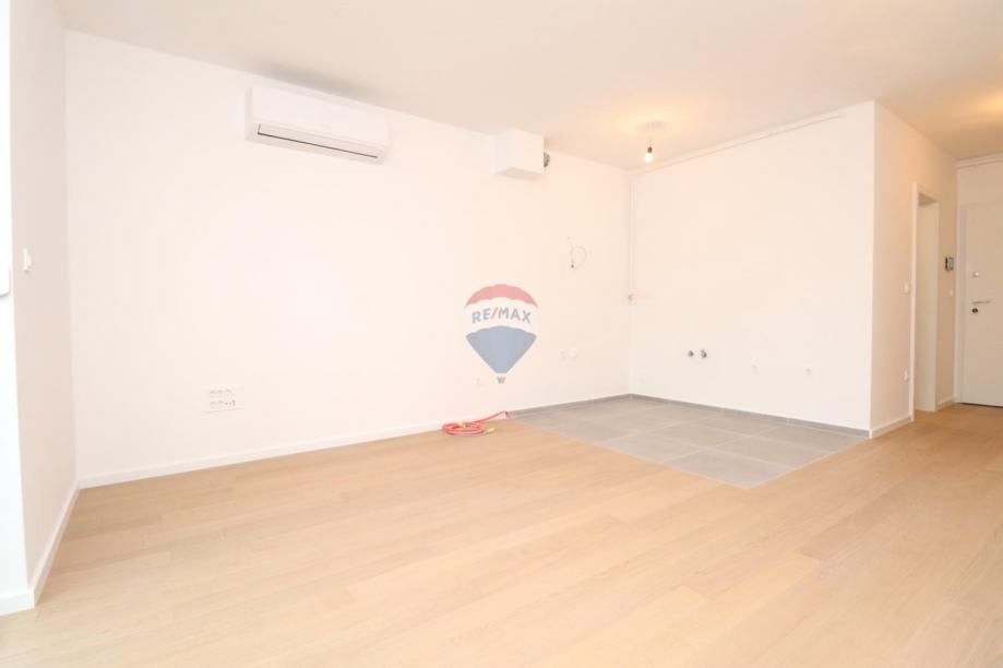 Stan se nalazi se na prvom katu i sastoji se od prostranog open space dnevnog boravka s kuhinjom (26m2), kupaonice (5m2) i loggie tlocrtne površine 6m2. Plinsko etažno podno grijanje, klima uređaj, troslojna pvc stolarija, protuprovalna vrata, lift. Sva brojila su odvojena.