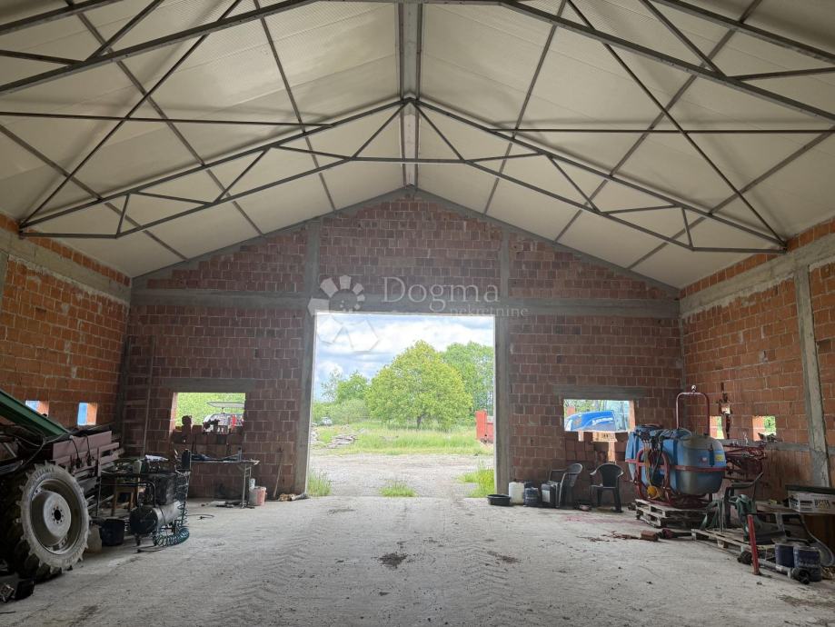 Na prodaju gospodarska zgrada površine gotovo 600 m² (dimenzije 12x50 m, visina 5 m) smještena na ograđenom, ravnom poljoprivrednom zemljištu površine 12.063 m². Uređeni pristupni put vodi dikretno do ovog imanja.