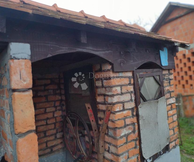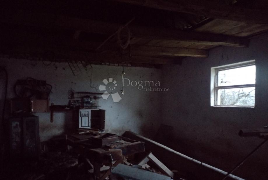 Prilaz u ograđeno dvorište s dvije strane, 3 gospodarske zgrade, kuruzana, bunar pitke vode, pecana, voćnjak, bez neposrednih susjeda.