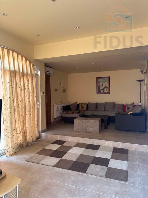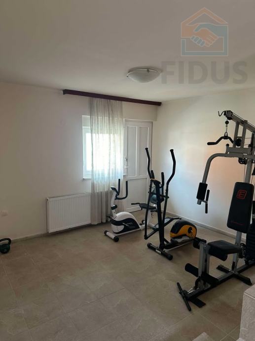 Iznajmljuje se uređena kuća površine 363 m2, a koja je u potpunosti renovirana 2020 godine. Kuća se sastoji od: 4 spavaće sobe, 2 kupaonice (u jednoj nalazi hidroromasažna kada), dnevnog boravka, kuhinje, trpezarije, vešeraja, hodnika, radne sobe, teretane te prostorije za druženja. Ova kuća također ima natrkivenu terasu, 2 garaže i dvorište.