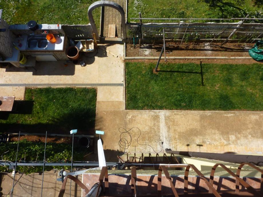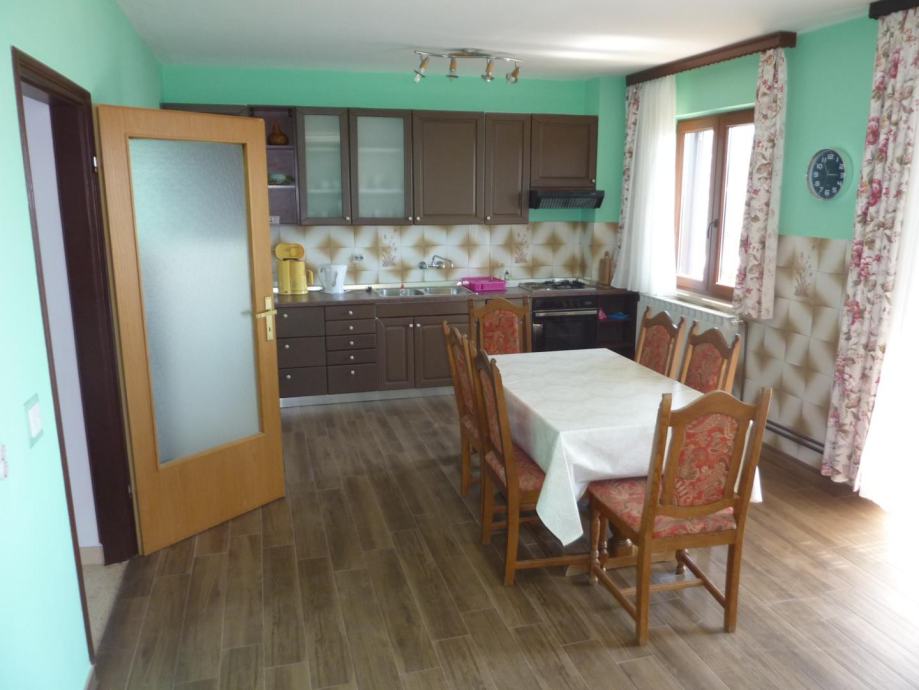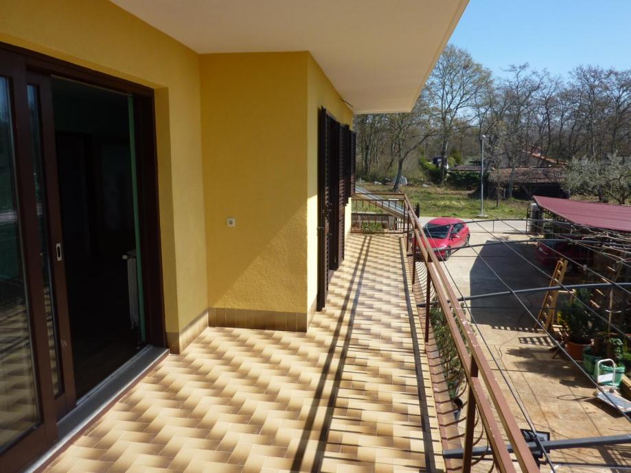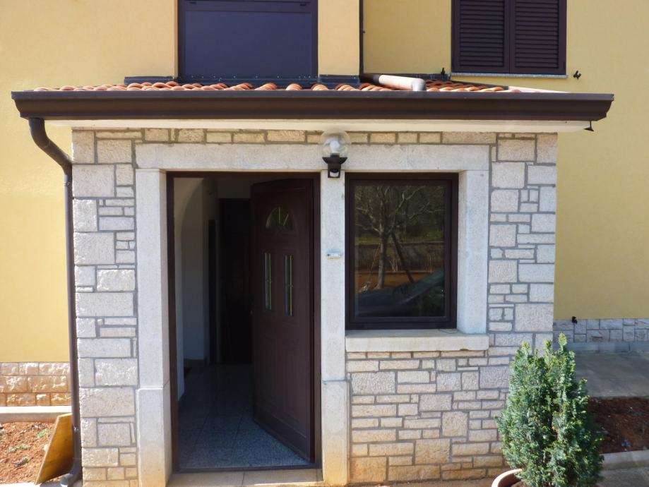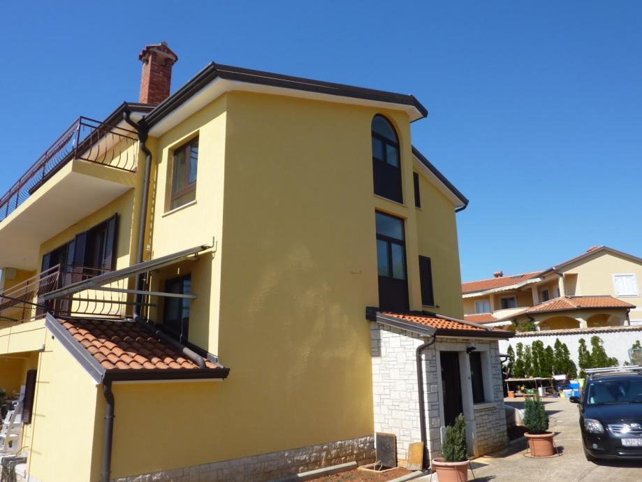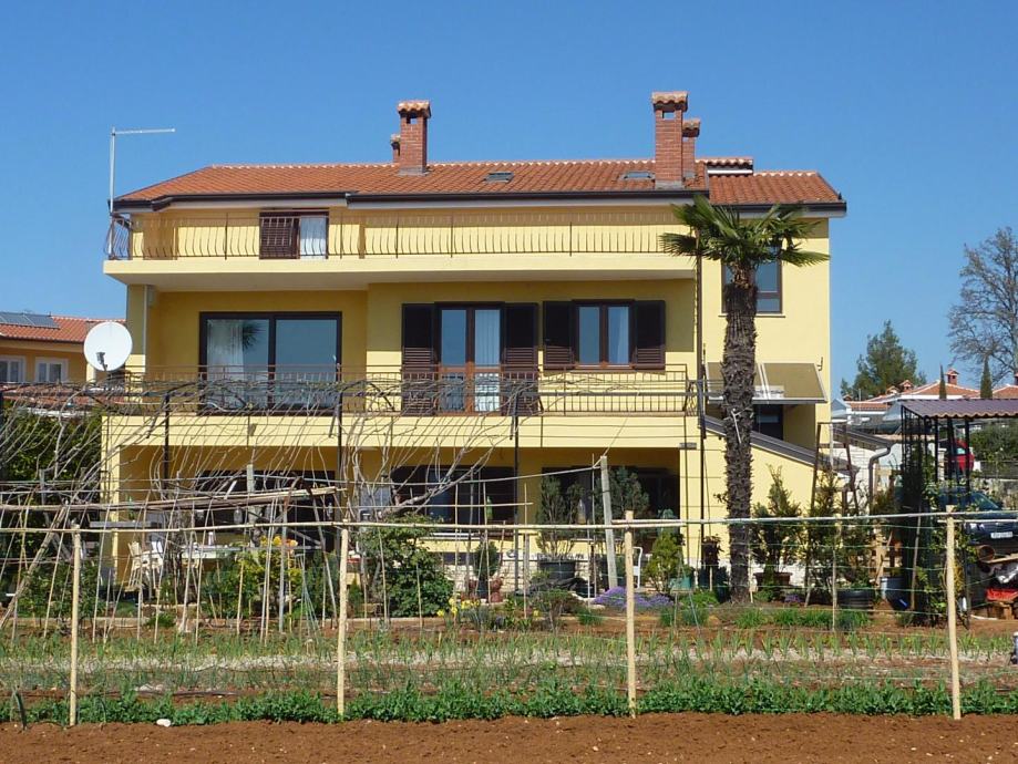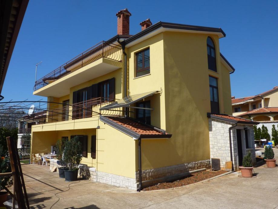 Velika obiteljska kuća sa 4 stana u blizini Poreča. Kuća se sastoji od tri etaže. Na prvoj se nalazi stan od 150m2 koji u svom stražnjem dijelu ima prolaz prema ljetnoj kuhinji i svim radnim sadržajima. Stan se sastoji od dnevnog boravka, kuhinje sa blagovaonicom, dvije spavaće sobe i kupaonice, kompletno uređen i u njemu žive vlasnici. Iz tog stana se prolazi do ljetne kuhinje i svih radnih sadržaja.