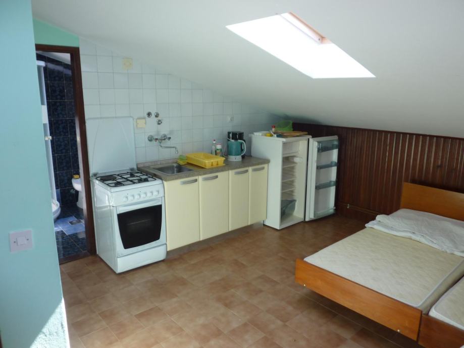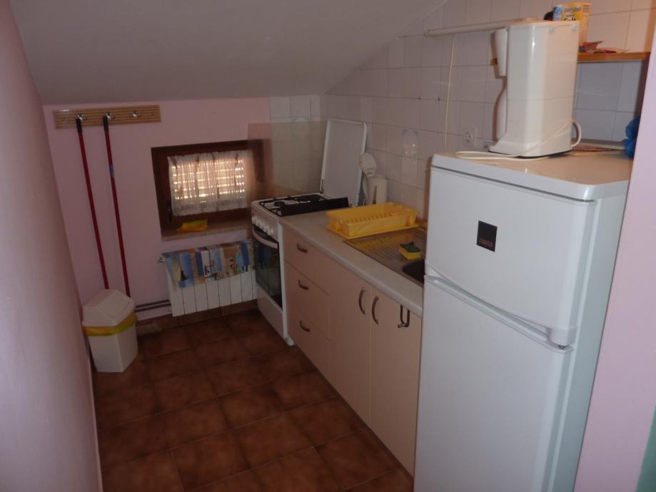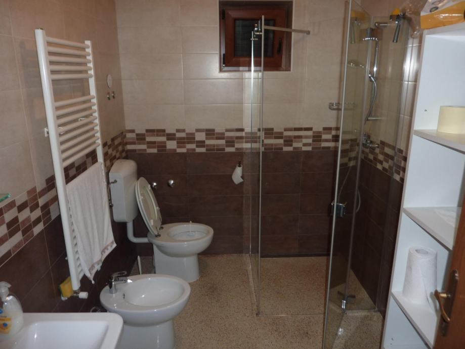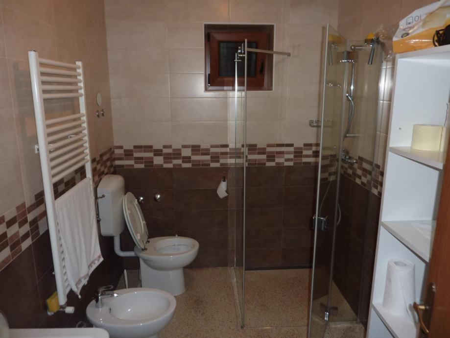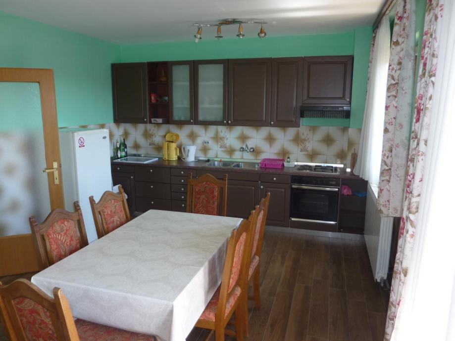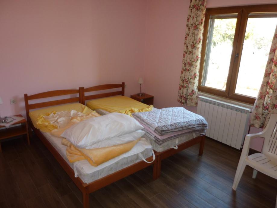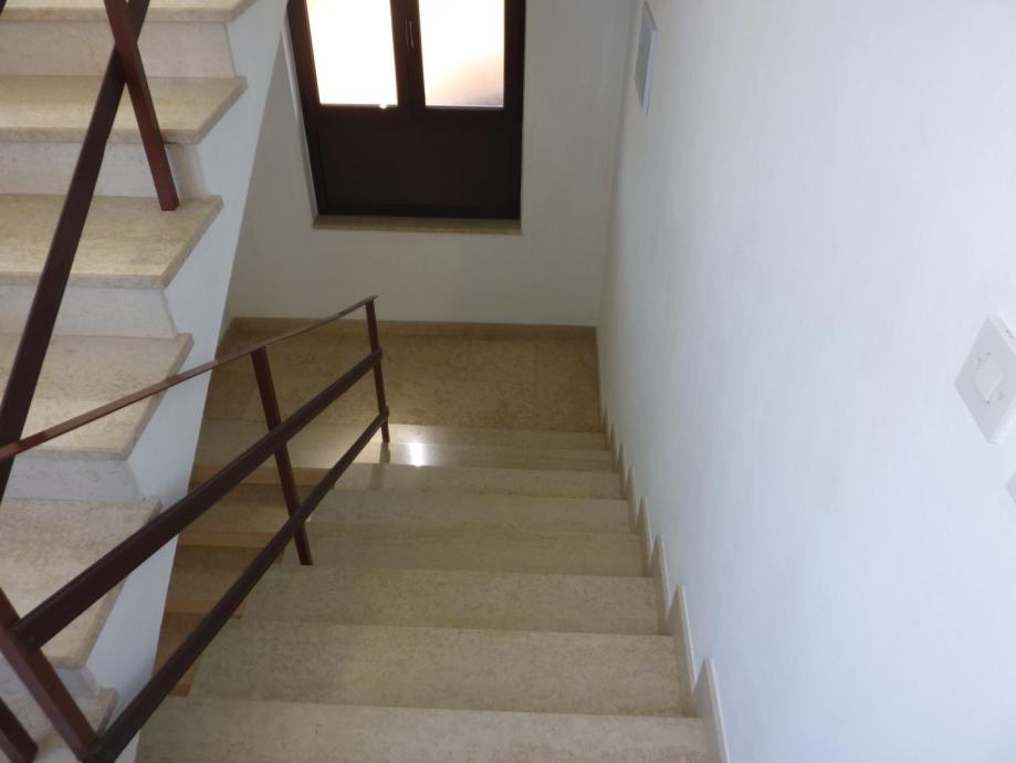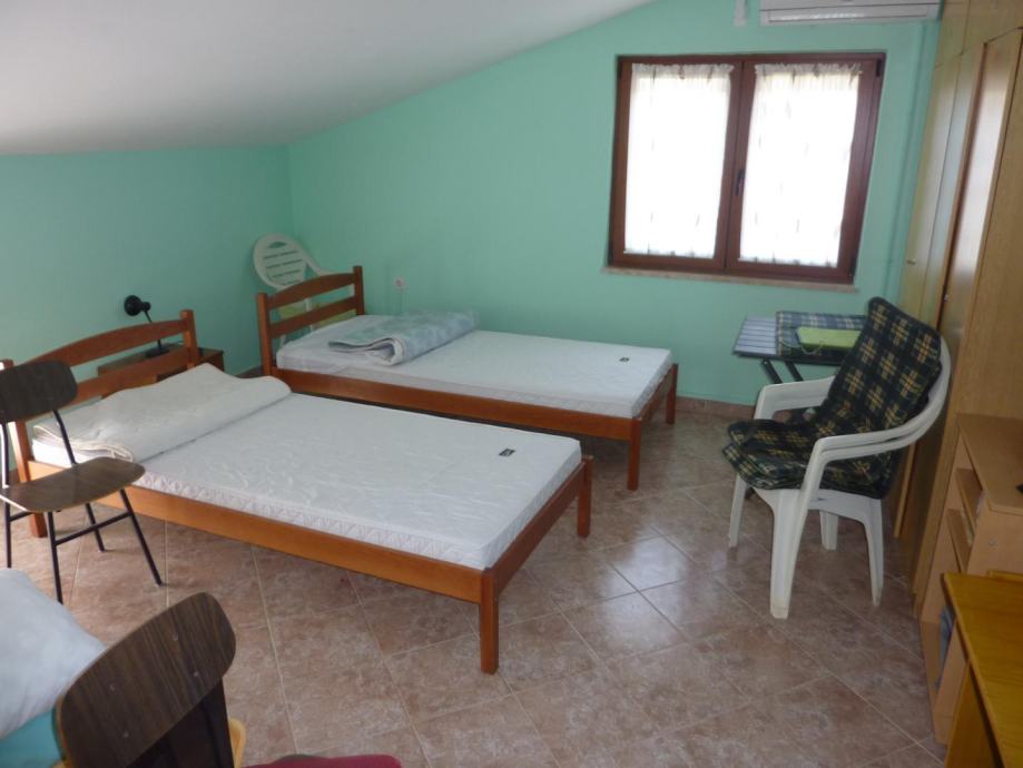 Na prvom katu se nalazi stan od 150 m2, sa čije se terase pruža predivan pogled na parcelu i okolne kuće i šume. Stan se sastoji od velikog dnevnog boravka, kuhinje s blagovaonicom, dvije spavaće sobe i dvije velike terase. Na drugom katu se nalaze dva jednosobna stana svaki sa svojom kuhinjom, dnevnim boravkom spavaćom sobom i kupaonicom, iz jednog stana postoji izlaz na ogromnu terasu s koje se pogled pruža sve do mora. Stan na prvom i stanovi na drugom katu godinama se uspješno iznajmljuju u turističkoj sezoni.