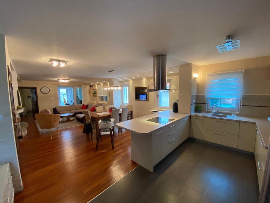 Prodajemo veliku, kompletno obnovljenu obiteljsku kuću blizu Bulevara, na Ričini u Zadru. Kuća je ukupne stambene površine 475 m2 na tri etaže, uz dodatnih 130 m2 nestambene površine u potkrovlju, spremnih za dodatno uređenje po potrebi... Kuća se nalazi na parceli od 481 m2 i sastoji od podruma, prizemlja, dva kata i velikog neiskorištenog potkrovlja. U prizemlju kuće se nalazi velika garaža, wellness prostorija, igraonica sa ljetnom kuhinjom i wc-m. na prvom katu kuće s e nalaze 4 spavaće sobe i kupaonica, a na drugom katu je veliki uređeni dnevni boravak sa kuhinjom i blagovanicom, a također i velika spavaća soba sa garderobom i kupaonicom, te dječja igraonica. U potkrovlju se nalazi još neiskorištenih 130 m2, koji se mogu vrlo jednostavno urediti za dodatan stambeni prostor, jer je podloga armirano betonska ploča, a krov je izrađen sa betonskim gredicama i crijepom. Kuća je rađena i nadograđivana u nekoliko faza, a zadnja kompletna renovacija je bila 2008 godine, kada su promijenjene sve instalacije, zidne obloge, krov i postavljena je termo fasada na cijeloj fasadi. Grijanje i hlađenje je provedeno putem dizalica topline, a kupaonice imaju provedeno i podno grijanje... U dvorištu kuće se nalaze vrt i privatni vanjski parking za 2 do 3 vozila. Kuća je udaljena 1 km od mora, a 2 km od Zadarskog poluotoka i nalazi se u urbanom, izgrađenom dijelu Zadra sa odličnom prometnom povezanošću. Kuća je prava prilika za velike obitelji, jer je odmah useljiva i nije potrebno preuređenje...