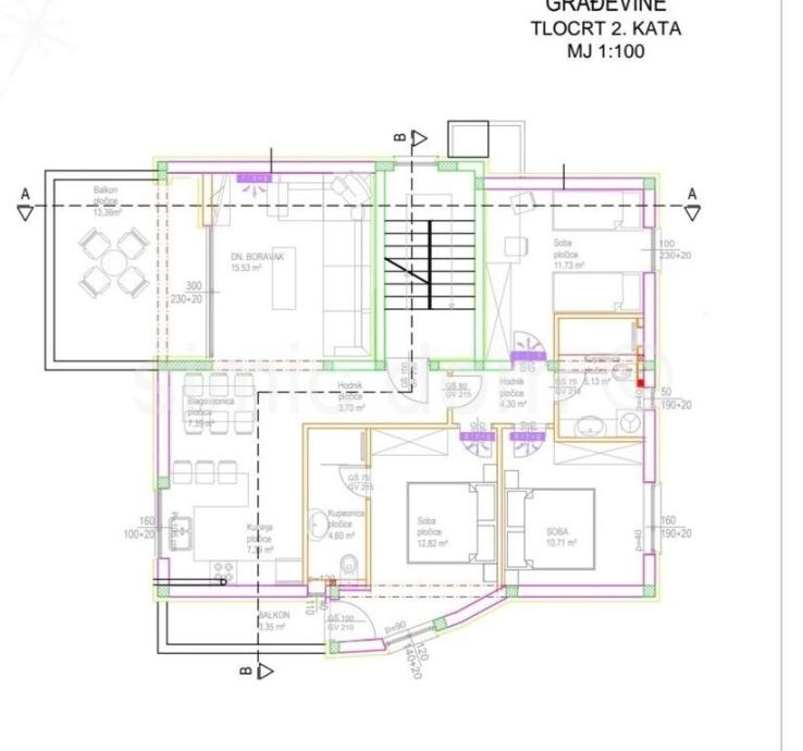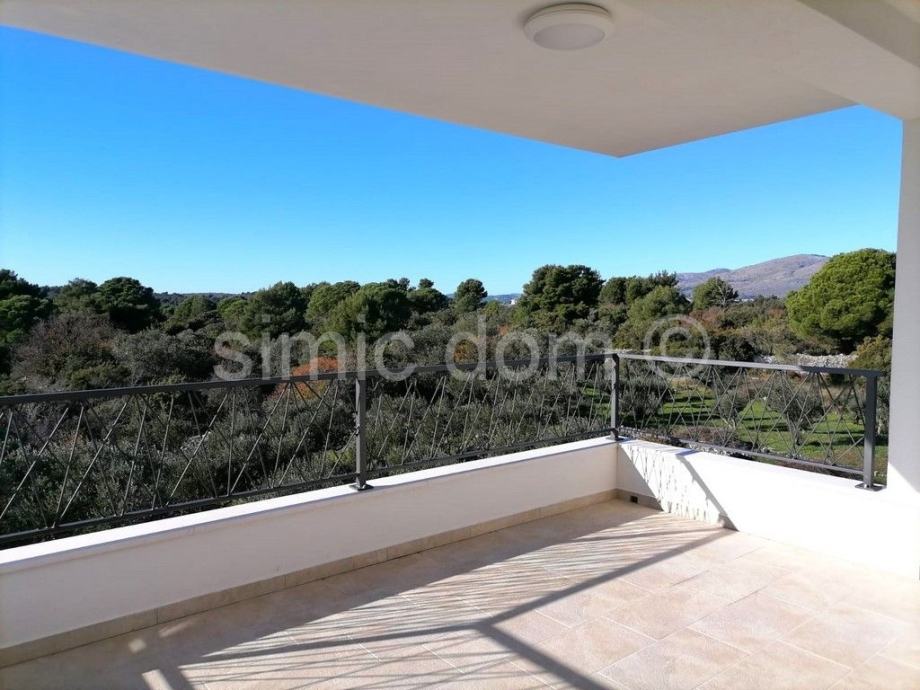 Na prodaju je prostrani trosoban penthouse apartman u novoizgrađenoj zgradi na južnoj dijelu Okruga Gornjeg na Čiovu. Apartman se nalazi na drugom katu zgrade udaljene samo 350m od mora te ima ukupnu podnu površinu od 100m2, od kojih je unutarnjeg prostora 83m2. Apartmanu također pripada i krovna terasa od 50m2, idealna za ljetna uživanja u suncu i spektakularnom pogledu na more i okolinu. Sastoji se od hodnika, tri spavaće sobe od kojih jedna ima izlaz na manji balkon, dvije kupaonice, velike kuhinje sa blagovaonicom te prostranog dnevnog boravka koji ima izlaz na veći balkon. Apartmanu također pripada i vanjsko parkirno mjesto. Zgrada je pri završetku tako da će apartman biti ubrzo useljiv. Vlasništvo uredno.