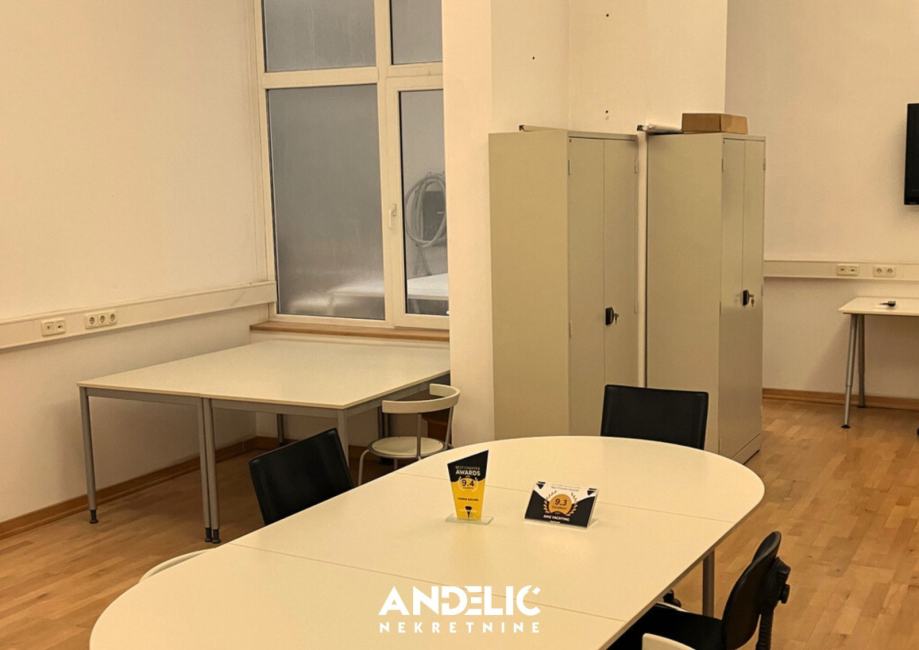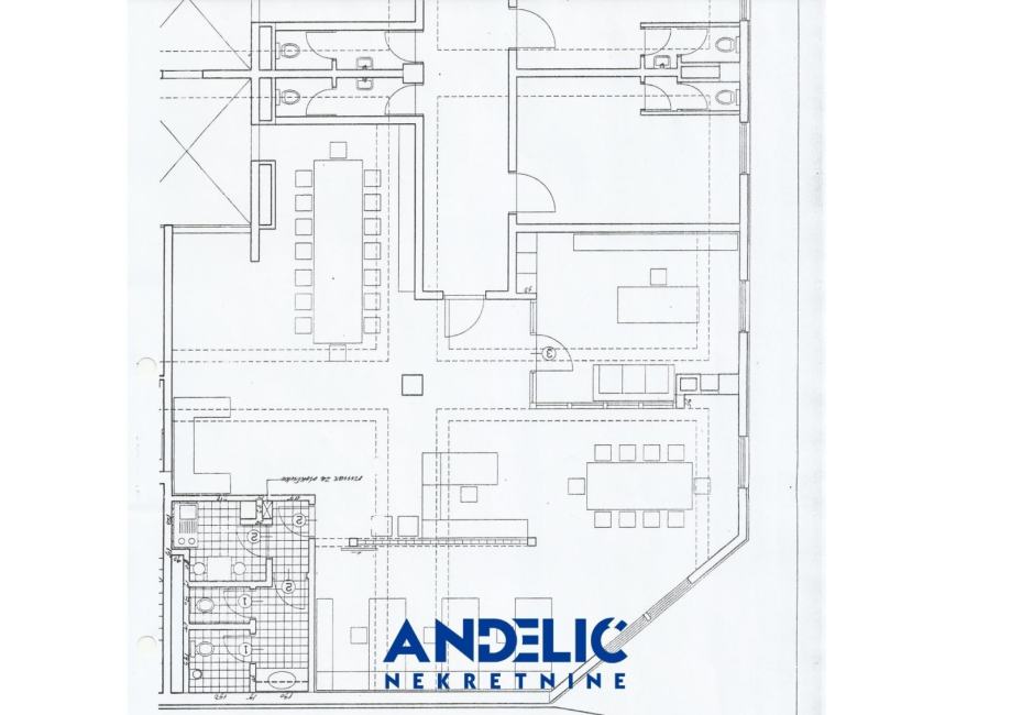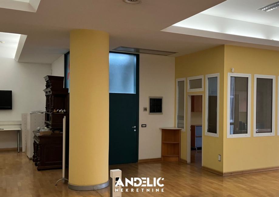Poslovni prostor od 154 M2 sastoji se od četiri velike prostorije, kuhinje, 6 saniranih čvorova te predpostora.