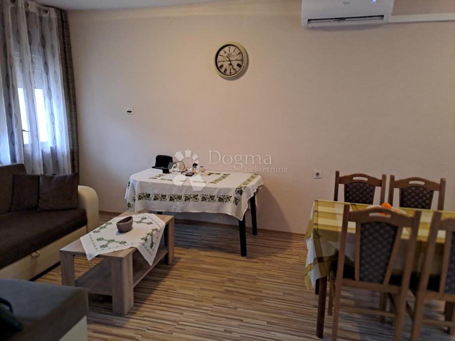 Novi uređaji su u prodajnoj cijeni (peć, hladjak, perilica, klima uređaj), kao i ostatak namještaja.