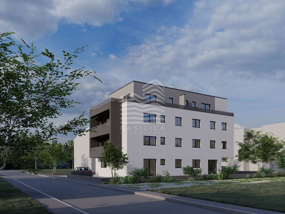 OPREMA:- gradnja: AB konstrukcija- fasada stiropor 15cm- stubište izolirano- PVC stolarija Marlex (Aluplast profili) sa tri stakla- unutarnja stolarija bijele boje (DSF Tomas)- kondenzacijski bojleri- parket hrast- pločice 1. klasa- sanitarije - kade ili tuš kabine, ovisno od stana do stana, te ugradbeni vodokotlić sa visećom školjkom.- klima uređaj- protuprovalna i protupožarna vrata marke Dierre- portafon