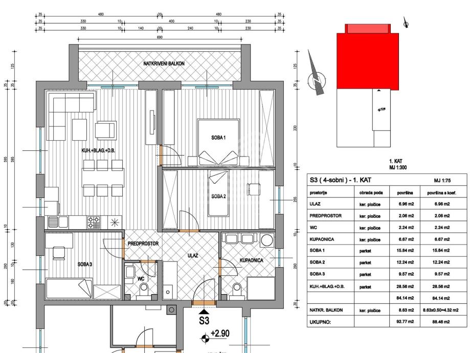 S3 - 1. kat - 4s - 92m2 - 302.200€