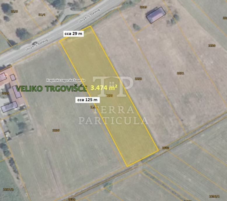 Na prodaju nudimo građevinsko zemljište površine 3.474 m² uz kojeg su svi priključci. 1/1, bez tereta. Udaljeno od centra 550 m. Nalazi se nasuprot kuće na adresi K.Š.Gjalskog 9.