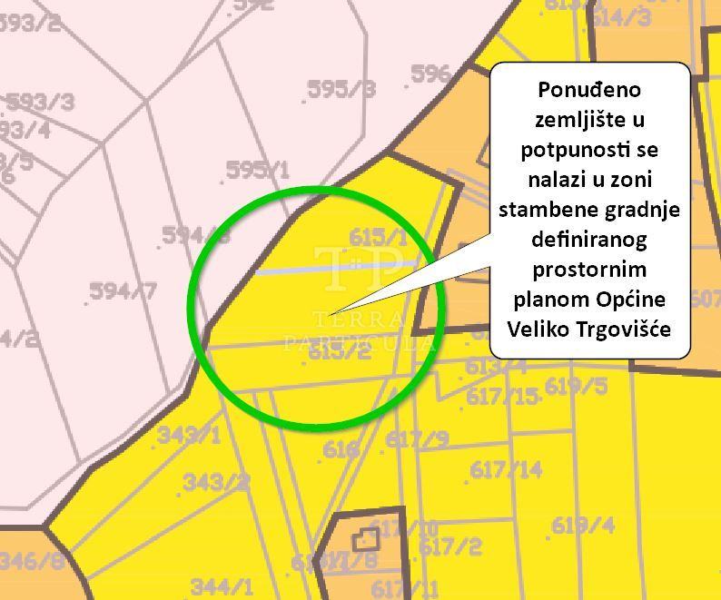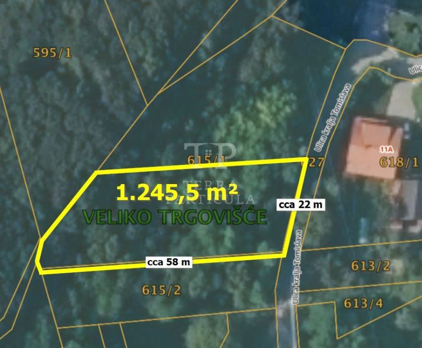 Na prodaju nudimo građevinsko zemljište površine 1245,5 m² na povišenom dijelu (platou) Ulice Kralja Tomislava nasuprot/iznad kućnog broja 11A. Radi se o slijepoj ulici s pogledom na Medvednicu (jug), cijelo Veliko Trgovišće kao i stubički kraj. Mikro pozicija gradilišta pruža intiman ugođaj, obzirom da iznad njega nema drugih kuća, niti će ih u budućnosti biti. Kuća ispod odvojena je pogledom. Između nje i ovog zemljišta prilazni je put i obilje zelenila. O prednostima mikro lokacije Veliko Trgovišće nije potrebno posebno naglašavati, no svakako je za naglasiti da je za putovanje brzim električnim vlakom do Zagreba potrebno 20-tak minuta.