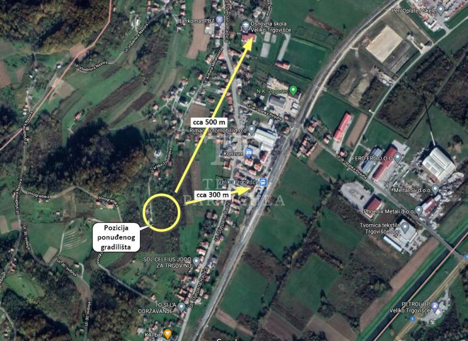 Na prodaju je građevinsko zemljište 3.018 m². Svi priključci su uz parcelu. Od centra Velikog Trgovišća udaljeno je stotinjak metara. Nalazi se u Ulici Kralja Tomislava s lijeve strane poslije kuće kućnog broja 17.