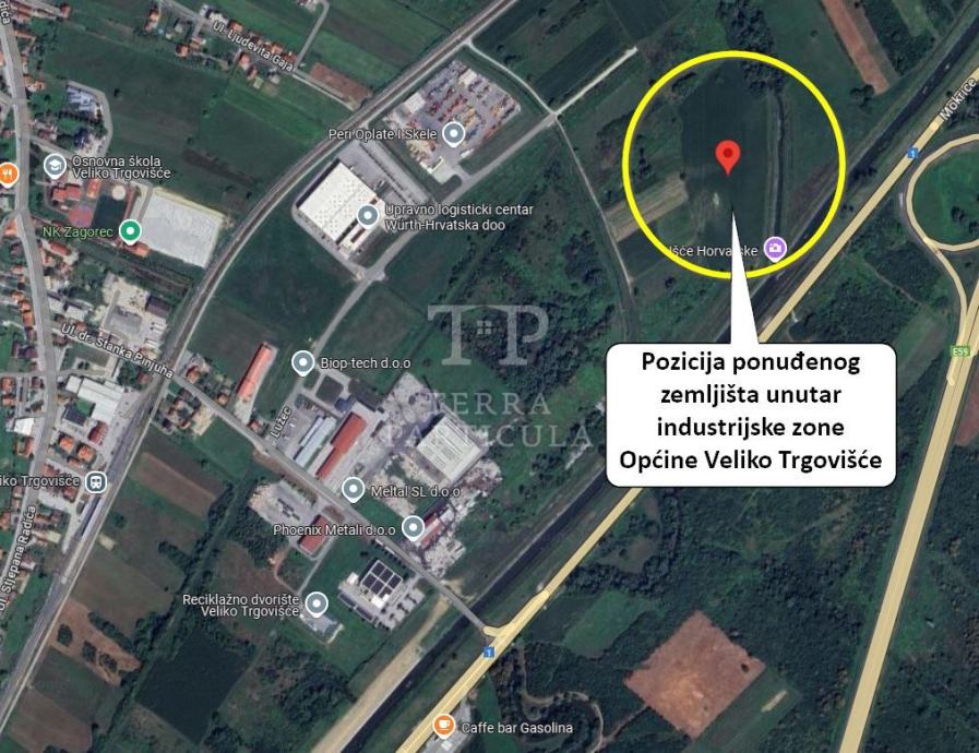 Na prodaju je zemljište površine 21.636 m² koje se nalazi u industrijskoj zoni Velikog Trgovišća i označeno je u prostornom planu oznakom „I“ . Vlasništvo je čisto, 1/1 bez tereta. Nalazi se uz u blizini „PERI oplate i skele“ i „Wurth veleprodajnog centra Veliko Trgovišće“. Cijena: 75 €/ m².