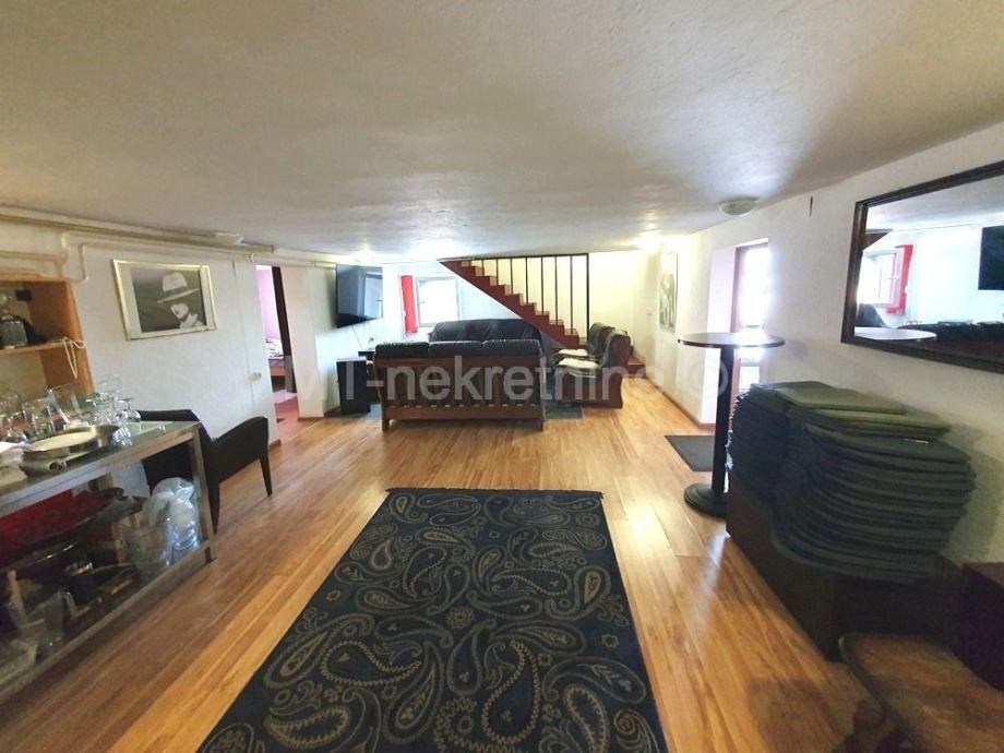 U prizemlju je poslovni prostor (caffe bar "Orka") koji radi duži niz godina (uhodani posao). Caffe bar sa natkrivenom terasom ima cca 100 m2 plus spremište od 16 m2, wc muški i ženski ukupno 8,80 m2, te sa stražnje strane zgrade natkrivenu terasu od 10 m2. Parking osiguran na vlastitom zemljištu.
