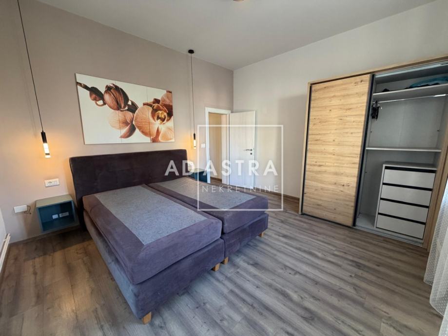 Opremljen je PVC stolarijom, klimatskom jedinicom u dnevnom dijelu, protuprovalnim vratima dok je grijanje centralno na gradski plin. Prodaje se u potpunosti namješten. Stanu pripada i prostrano spremište u suterenu zgrade.