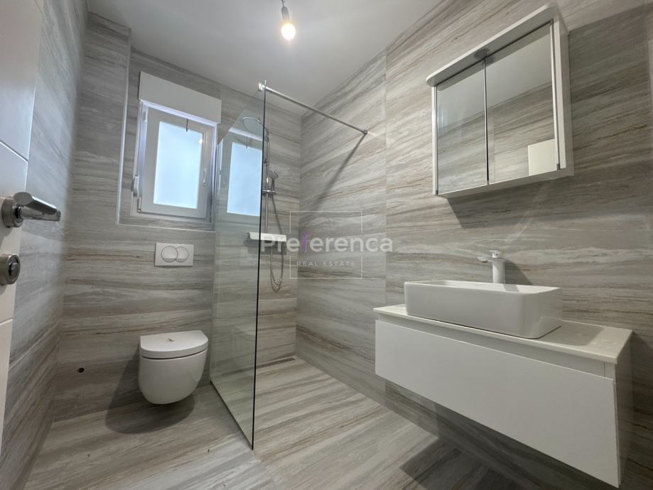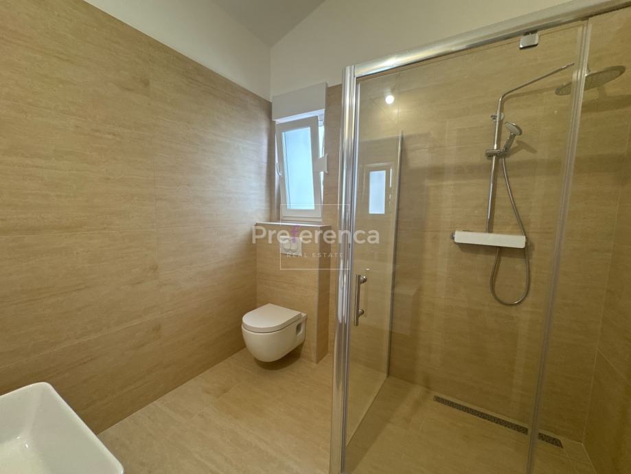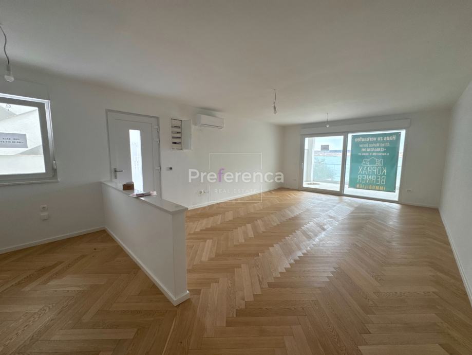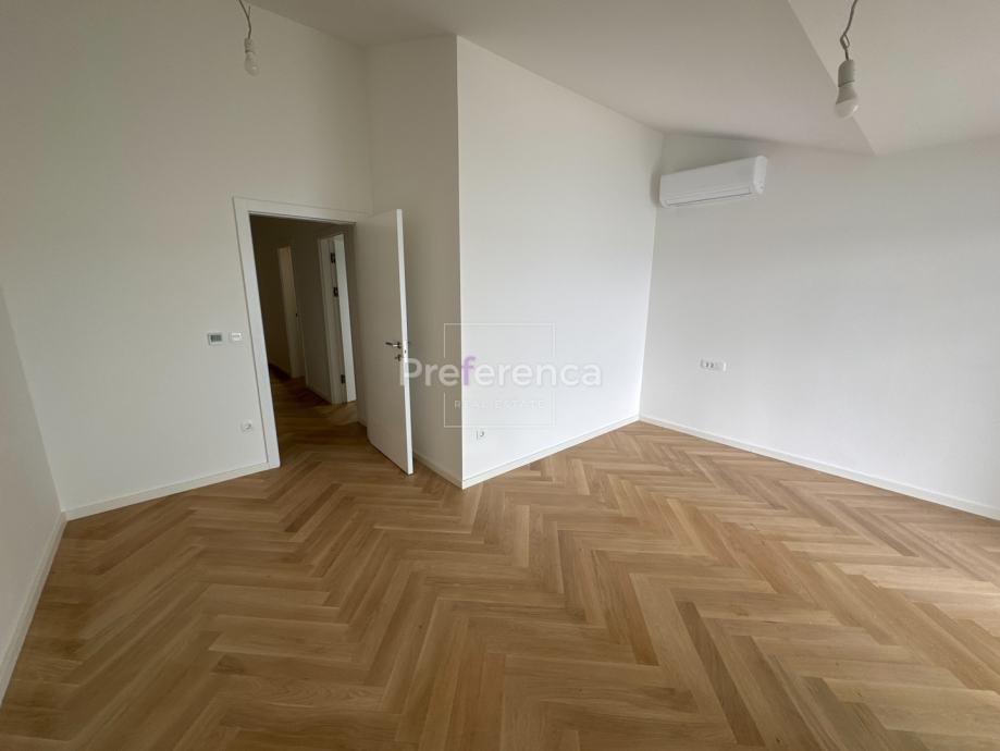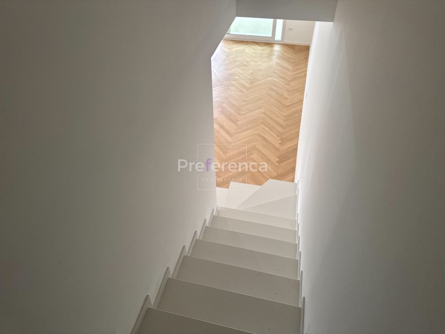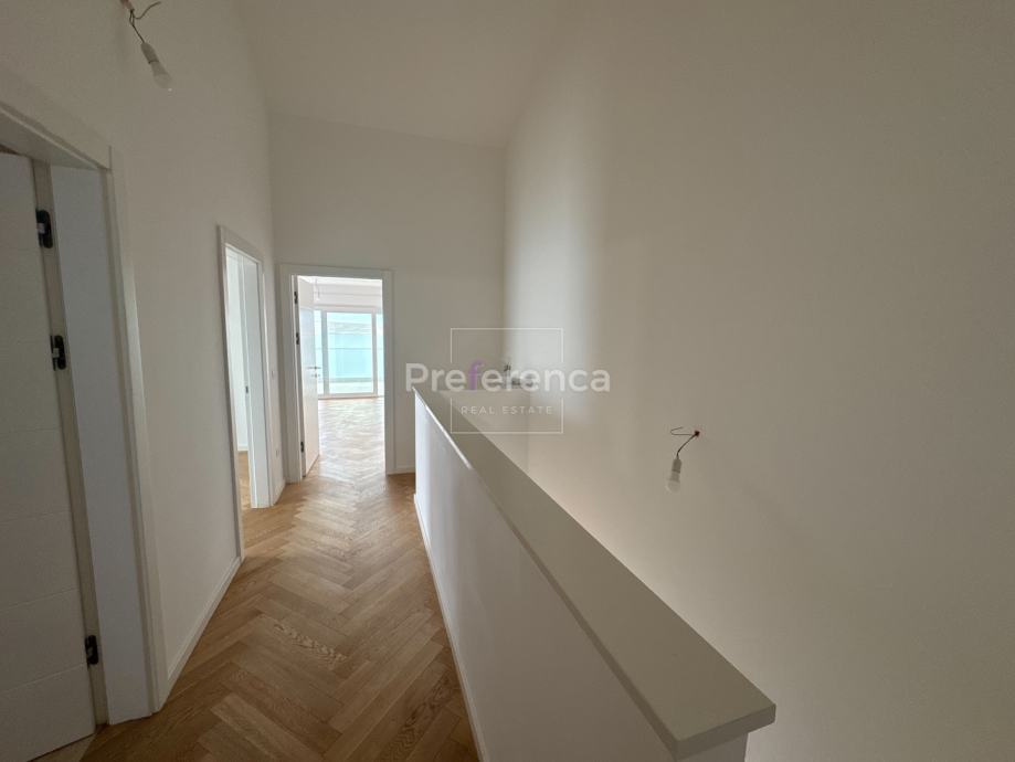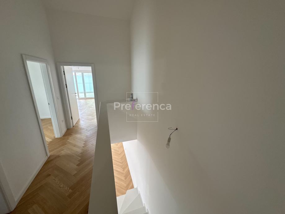 Dvoetažni stan se sastoji od prostranog dnevnog boravka, kuhinje s blagovaonicom, TRI spavaće sobe, dvije kupaonice. Stan ima dvije prostrane terase,