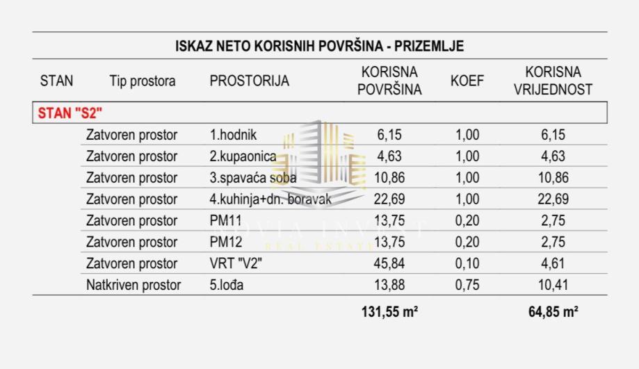 Ukupna površina: 131,55 m² Neto korisna vrijednost: 64,85 m²