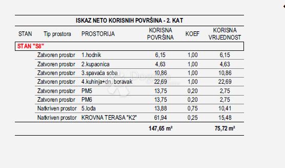 Površina stana je 75,7 2m2 korisne vrijednosti.
