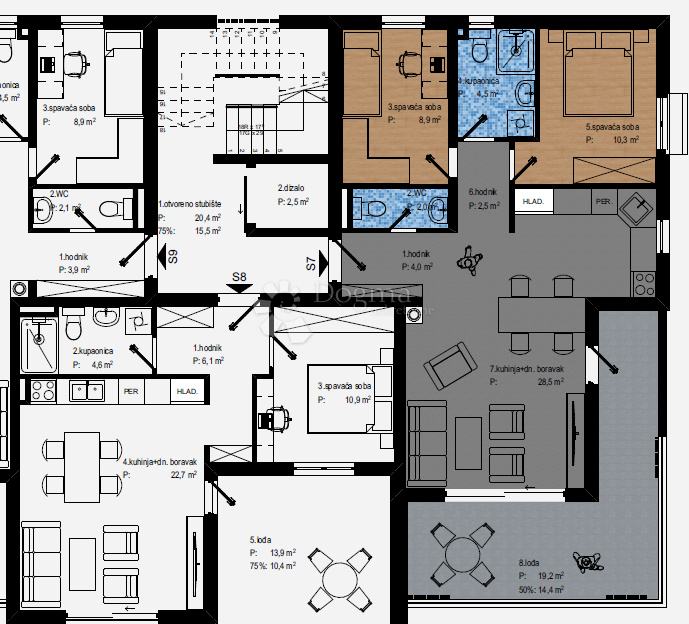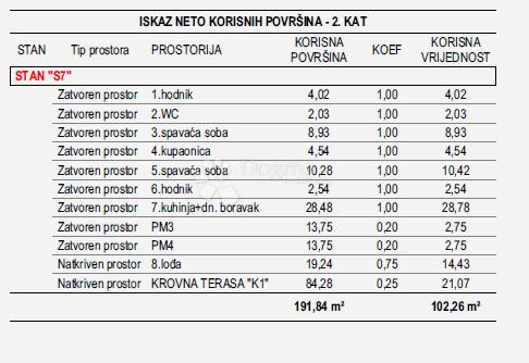 Na Vidikovcu u vrhunskoj gradnji gradi se zgrada sa 9 stanova. Penthouse oznake S7 smješten je na drugom katu zgrade sa vlastitom krovnom terasom, Jugoistočno orijentiran.