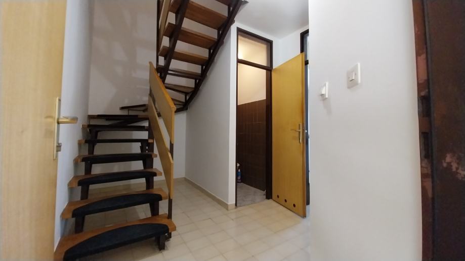 Noviji dvoetažni stan na atraktivnoj stambenoj lokaciji, Vijenac Kraljeve Sutjeske, Industrijska četvrt, Osijek. Stan se nalazi u kvalitetno tvrdo zidanoj stambenoj zgradi koja je izgrađena početkom osamdesetih godina. Stan se nalazi na četvrtom i petom katu/potkrovlju stambene zgrade. Stan je u urednom stanju. Stambena površina stana prostire se na dvije jednoj etaže ukupne površine 96,31m2. Prva etaža četvrti kat površine 55,95m2, sastoji se iz prostranog dnevnog boravka povezanog sa blagovaonicom i kuhinjom, malog toaleta, ostave, lođe i hodnika. Druga etaža peti kat/potkrovlje površine 40,36m2, sastoji se iz dvije sobe, garderobe, kupaonice i hodnika. Stan ima pripadajuće podrumsko spremište površine 7,19m2.Stan je u urednom stanju. Stan ima sva brojila odvojena, telefon, internet, portafon. Grijanje je centralno gradsko. Stan se nalazi u blizini centra gornjeg grada i centra donjeg grada, gradskih bazena, škole, vrtića, ambulante, tržnice, tramvaja, trgovačkog centra.
