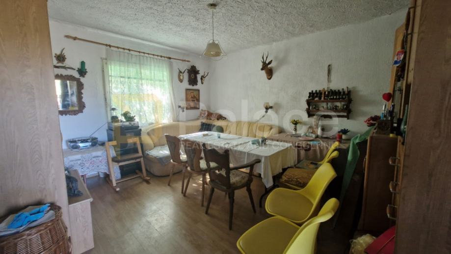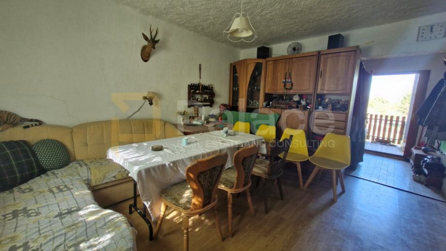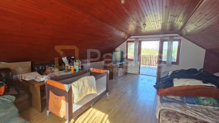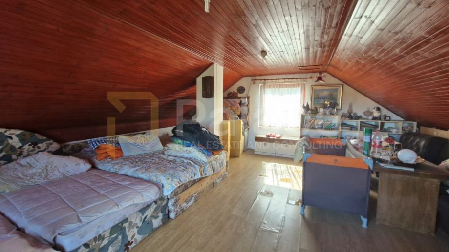 Prizemlje kuće sastoji se od hodnika, dnevnog boravka s kuhinjom, ostave, sobe i natkrivene terase.Na katu kuće nalazi se velika soba koja se može pregraditi u odvojene prostorije te velika terasa.Ispod cijele kuće je podrum.Ukupna površina placa je 1250 m2.