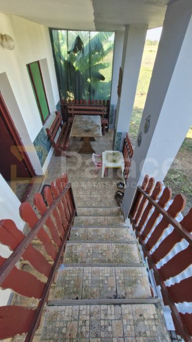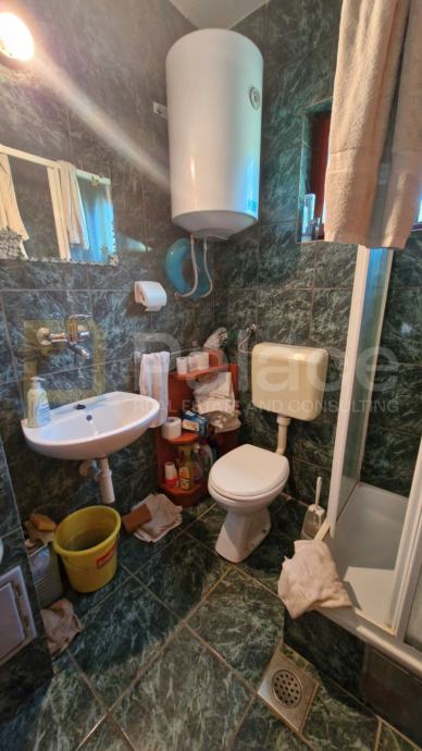 Kuća je okružena zelenilom, u mirnom vikend naselju.Moguća je zamjena za drugu nekretninu na moru (manje zemljište ili nešto slično).
