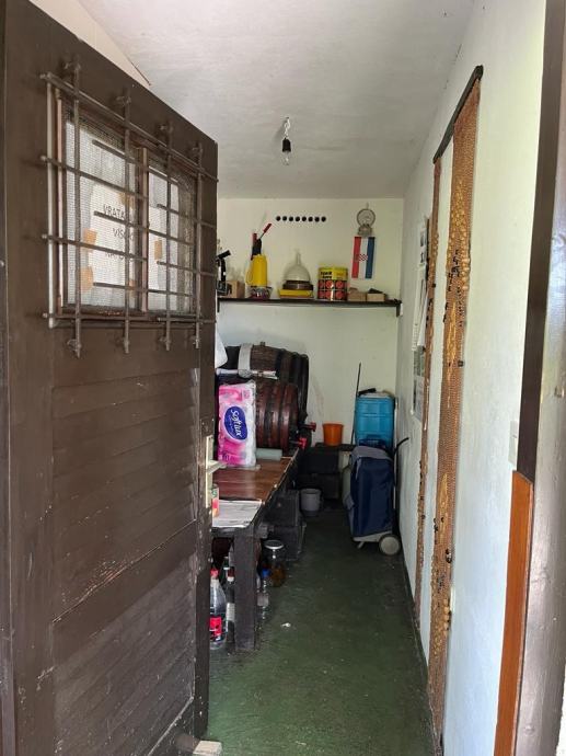 Vikend kuća se sastoji u suterenu od dnevnog boravka, kuhinje i blagovaonice, WC-a i dva spremišta te velike natkrivene terase, a u prizemlju od dvije sobe, hodnika i kupaonice te natkrivenog balkona, spremišta u potkrovlju. Također postoji i spremište za bačve i alat u posebnoj pomoćnoj zgradi sve ukupne podne površine 110,00 m2. Kuća ima standardni priključak struje, vode i telefona. Na sjevernoj strani su dva parkirna mjesta (uz mogućnost proširenja).