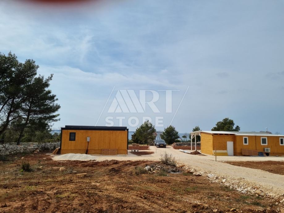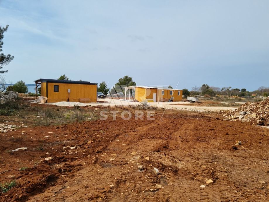 Na prodaju je vikend parcela u Peroju udaljena od plaže 200m. Sa parcele se pruža pogled na more. Parcela ima priključak za vodu, te je uređen pristup do nje. Na okolnim parcelama su postavljene drvene mobilne kućice, te je sve lijepo uređeno.