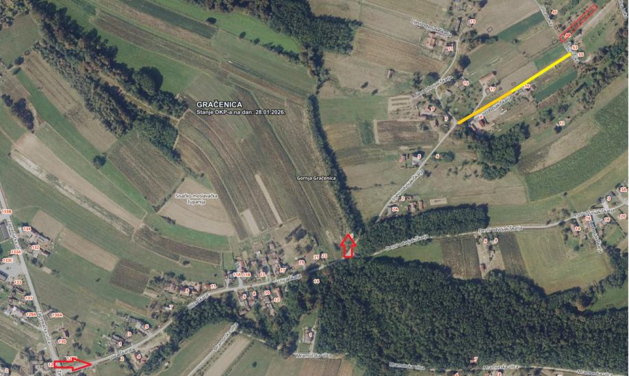 *sa Zagrebačke ceste skrećete u ulicu Škarje, te zatim u Lijevi odvojak Škarja. Vozite ravno do ulice Luka (na karti označeno žutom bojom, parcela označena crvenom bojom).