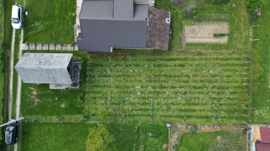 Ukupna površina parcele iznosi 737 m2, od čega je 39 m2 tlocrtna površina objekta, dok preostalih 698 m2 čini uređeno dvorište i vinograd. Nekretnina se nalazi u građevinskoj zoni s pretežito stambenom namjenom, što znači da postoji mogućnost dogradnje, adaptacije ili izgradnje nove stambene jedinice.