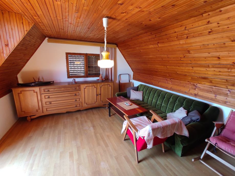 U potkrovlju postoji još jedan uređena soba i neuređeni dio koji se može posložiti po želji vlasnika kao dodatna soba, proširena velika soba, a postoji i mogućnost uređenja i male kupaonice.
