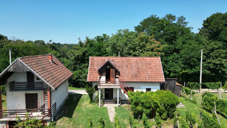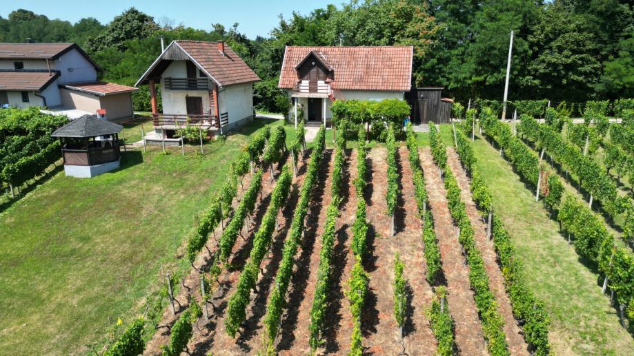 Ova vikendica ima vanjski vidikovac s prekrasnim pogledom na okolnu prirodu i vlastitu parcelu veličine 1.079 m2 s održavanim vinogradom.