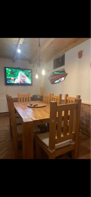 Sa fotografija je vidljivo da se u dvorištu nalazi još jedan objekat,radi se o tipu brvnare s karakterističnom drvenom konstrukcijom (36m2) u koje se nalazi Finska sauna,jacuzzi za 4-5 osoba,kupatilo,…