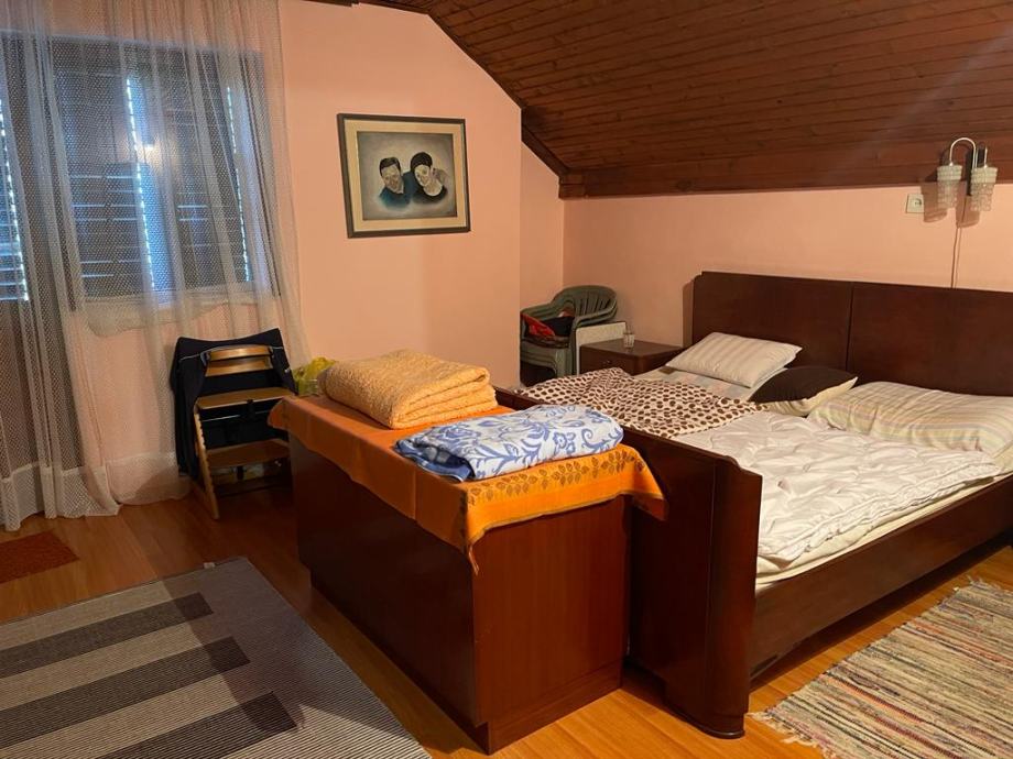 U prizemlju se nalazi kuhinja, dnevna soba i kupaona s WC-om, a na katu dvije sobe. Sagrađena je 1976 godine, a krov je promijenjen prije 10 god. Struja i voda provedene, kanalizacija i plin na cesti. Ukupna površina čestice 1427 m2. U dvorištu se nalazi i vrtna kućica te natkrivena terasa jugozapadne orijentacije s koje se pruža predivan pogled.