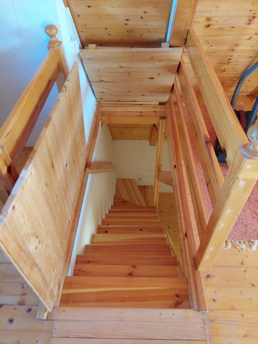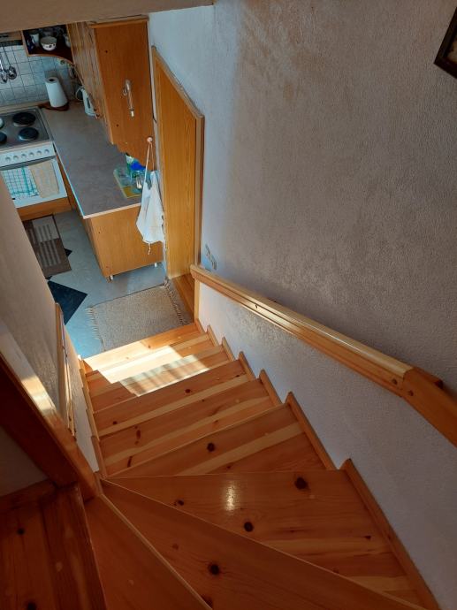 U prizemlju se nalazi dnevna soba sa kuhinjom, WC, ostava i drvarnica.